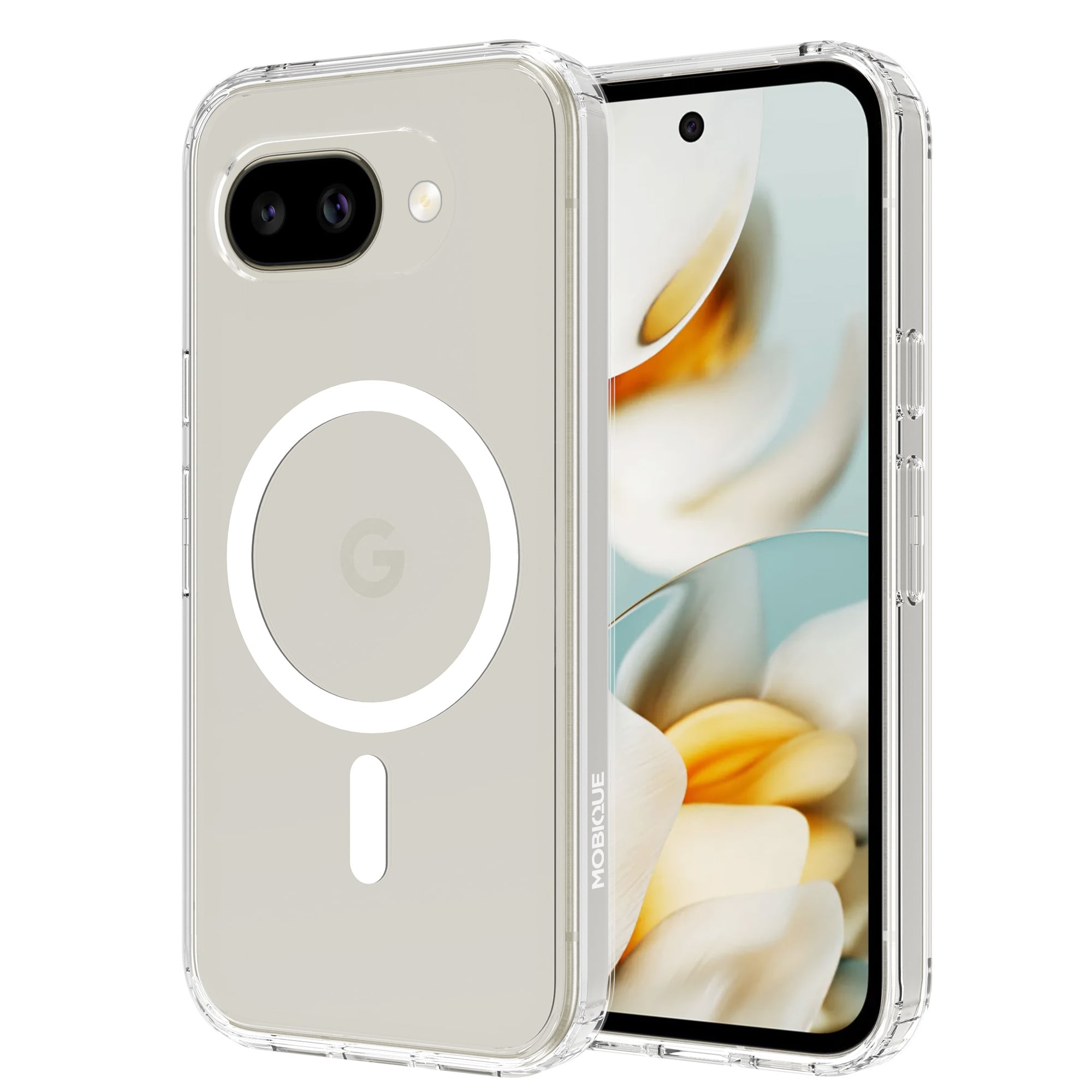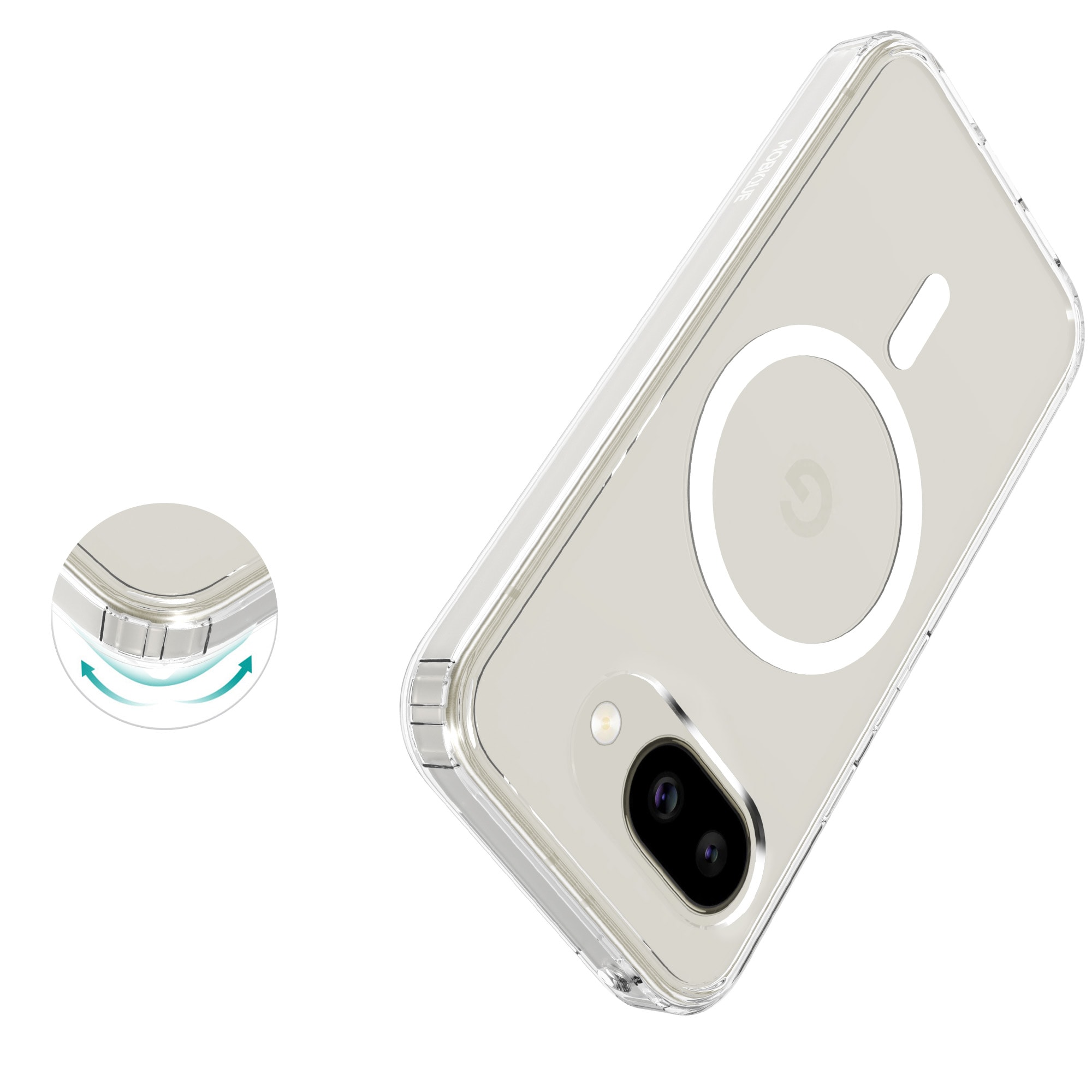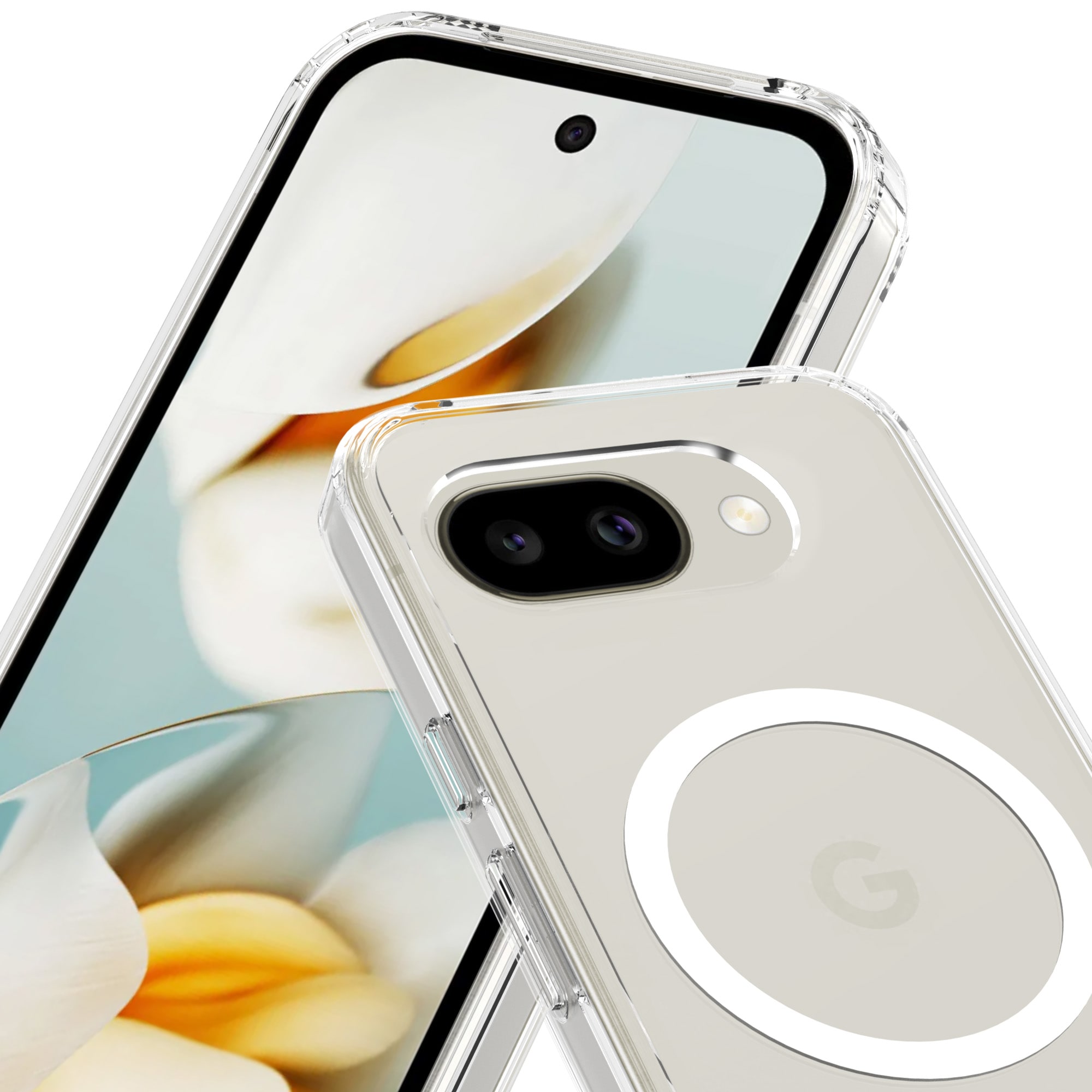 Hybridskal med magnetisk ring till Google Pixel 10a. För bästa skydd mot stötar och fall är skalet tvådelat med en TPU-kärna och ett hölje i hårdplast. Ringen på baksidan är magnetisk och kan användas tllsammans med MagSafe-kompatibla tillbehör såsom laddare och korthållare.