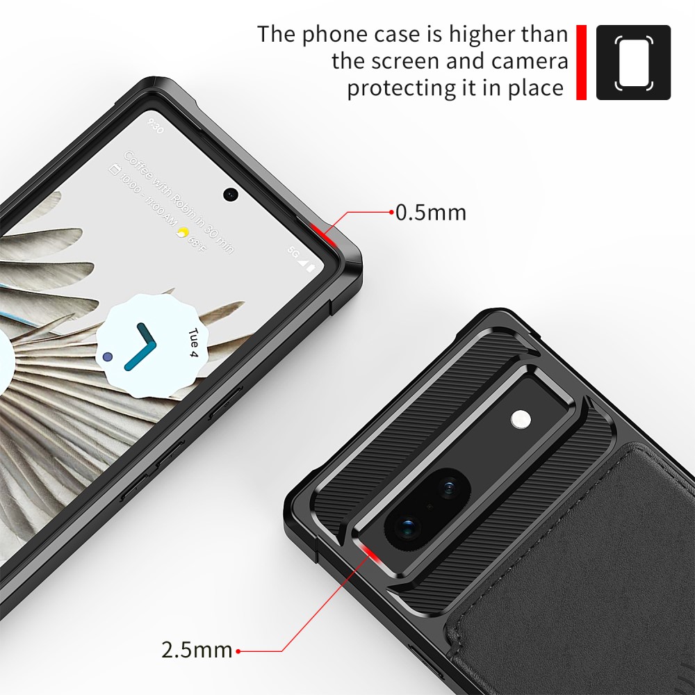 Shock-absorbing phone case with a hidden wallet on the back for Google Pixel 7a. The case features a stylish design and reinforced corners for the best protection.