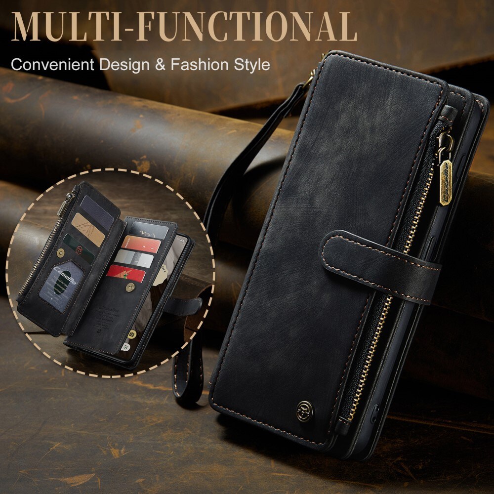 Phone wallet case with an extra spacious wallet and multiple card slots for Google Pixel 7a from CaseMe. The wallet features 7 card slots, a bill compartment, and a roomy coin pocket with a zipper.