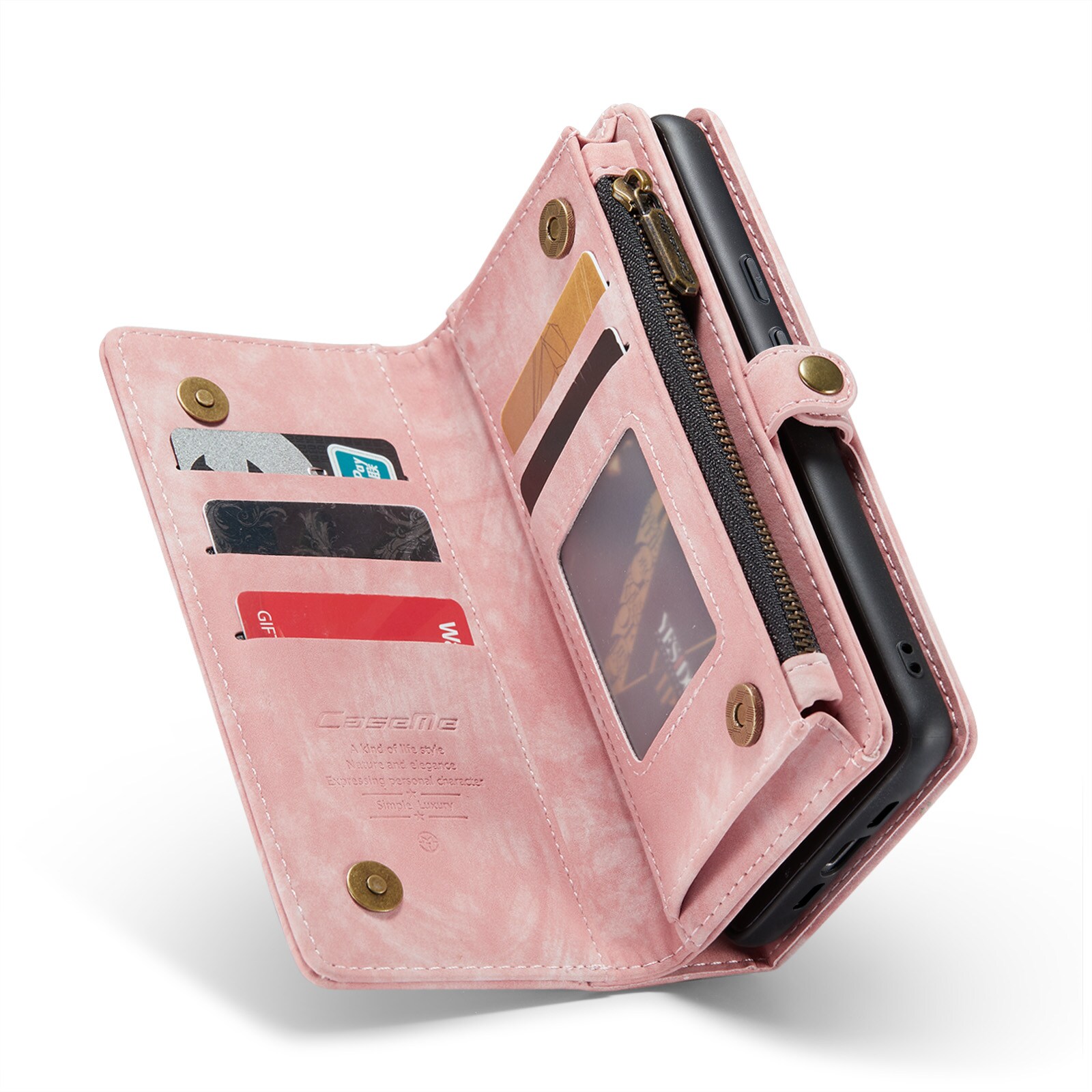 Mobile phone case with magnetic shell and wallet with extra card slots from CaseMe. The spacious wallet has several card slots, a bill pocket, and a zipper coin pocket. The phone is securely held in place and protected in the shock-absorbing magnetic shell, which is removable, allowing you to take it off the case when you are at home, work or traveling.