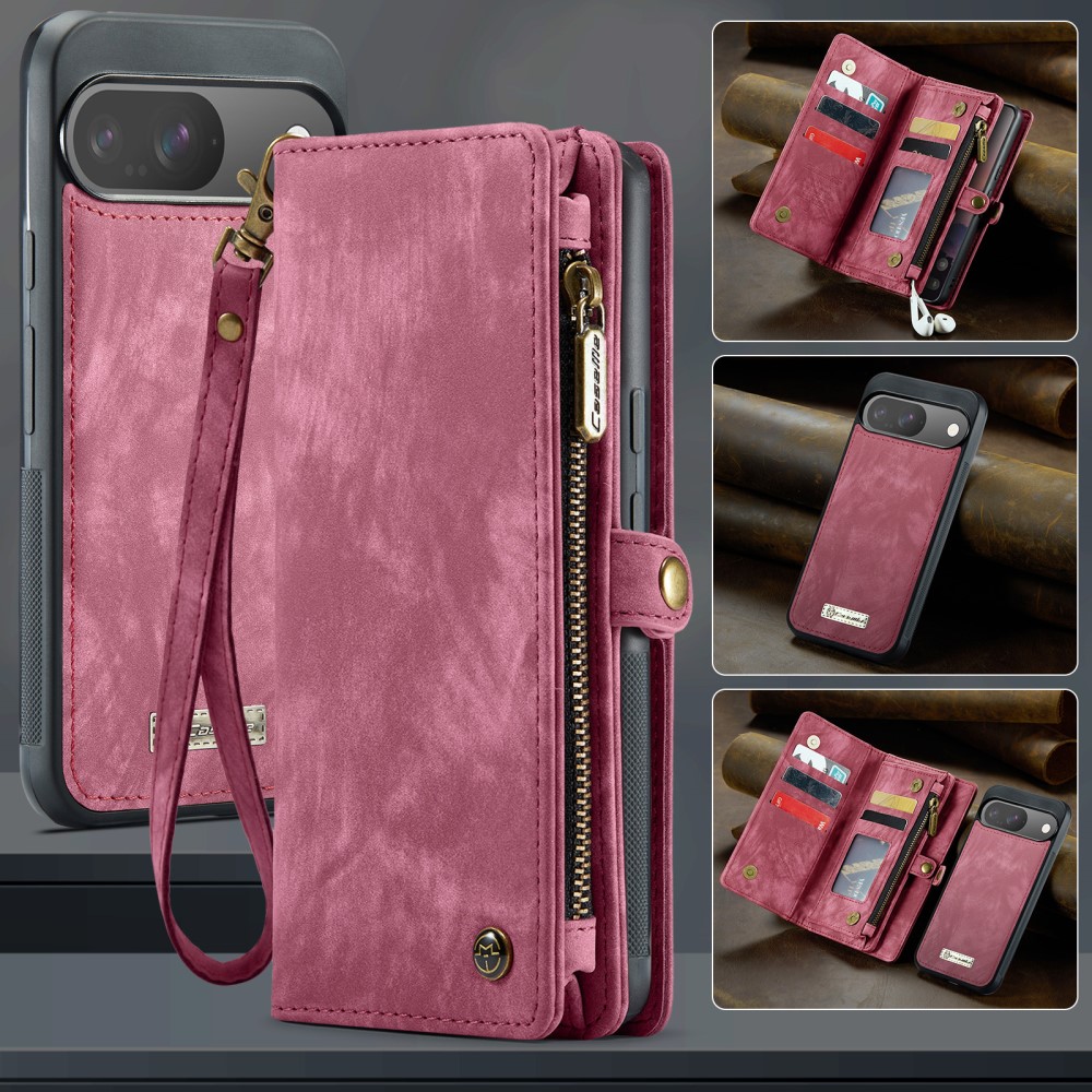 Mobile phone case with magnetic shell and wallet with extra card slots from CaseMe. The spacious wallet has several card slots, a bill pocket, and a zipper coin pocket. The phone is securely held in place and protected in the shock-absorbing magnetic shell, which is removable, allowing you to take it off the case when you are at home, work or traveling.