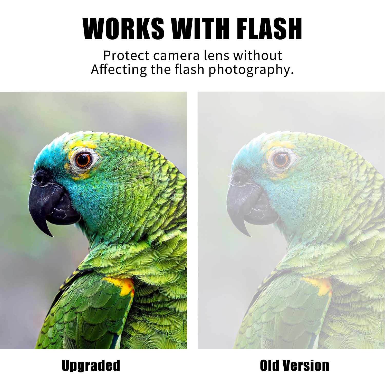 Glaset har AR-beläggning (antireflection) som reducerar reflektioner och ger hög ljusgenomsläppning för bibehållen bild- och videokvalitet. Ytan har även anti-fingeravtrycksbehandling som motverkar fett och smuts och gör skyddet enkelt att hålla rent.