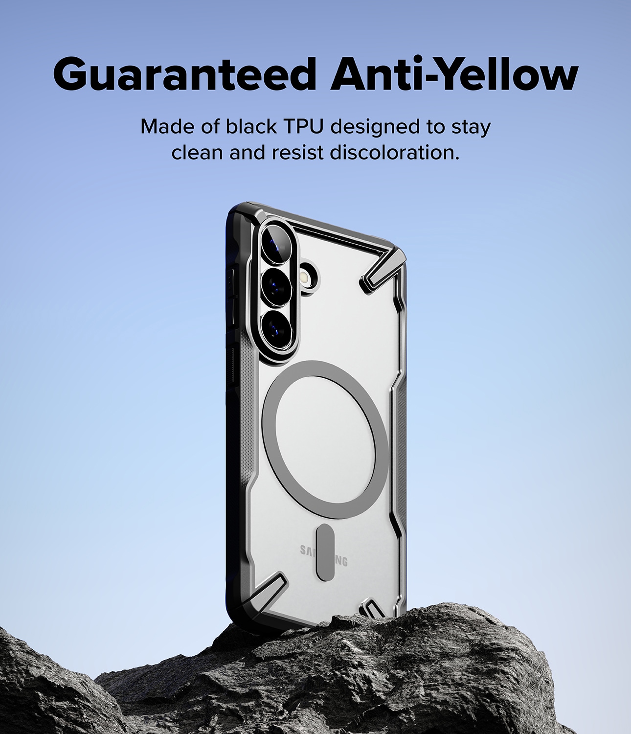 Stötskyddande Fusion X skal med stöd för MagSafe från Ringke till Samsung Galaxy S26. Ringke Fusion X ger din telefon riktigt bra stötskydd och en snygg look. För bästa skydd har skalet har en stötdämpande ram som absorberar fall och en baksida i hård polykarbonat.
