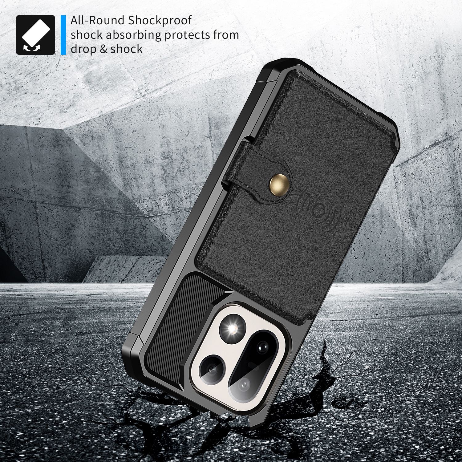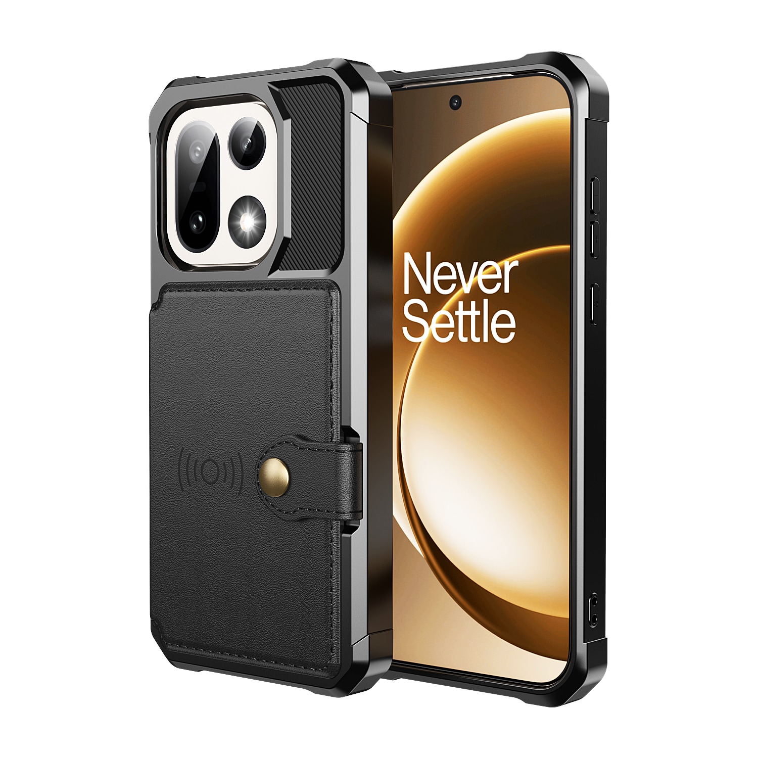 Shock-absorbing phone case with a hidden wallet on the back for OnePlus 15. The case features a stylish design and reinforced corners for the best protection.