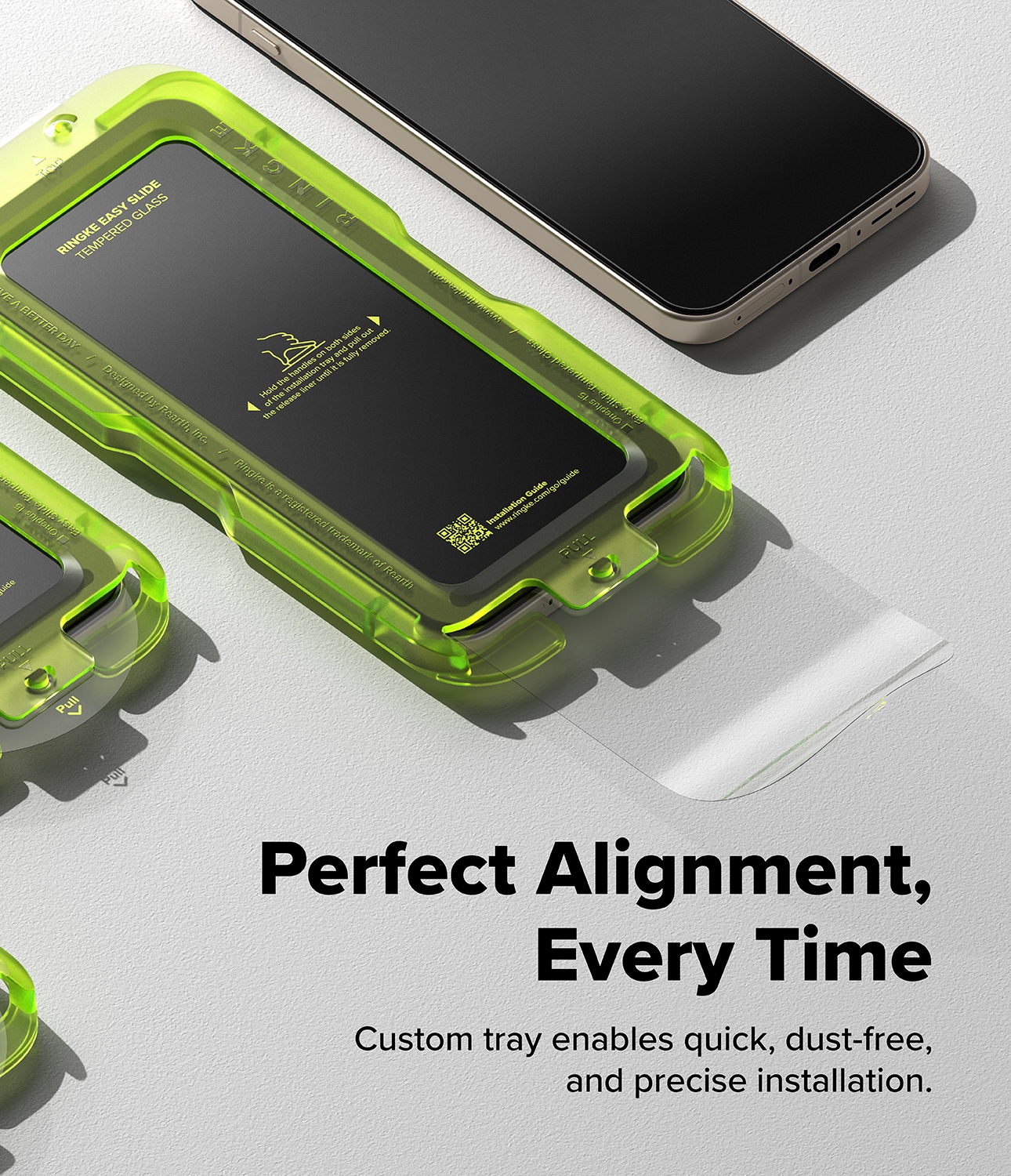 Installation is incredibly simple, thanks to the included practical installation tool. This allows you to attach the screen protector perfectly straight on the screen without hassle.