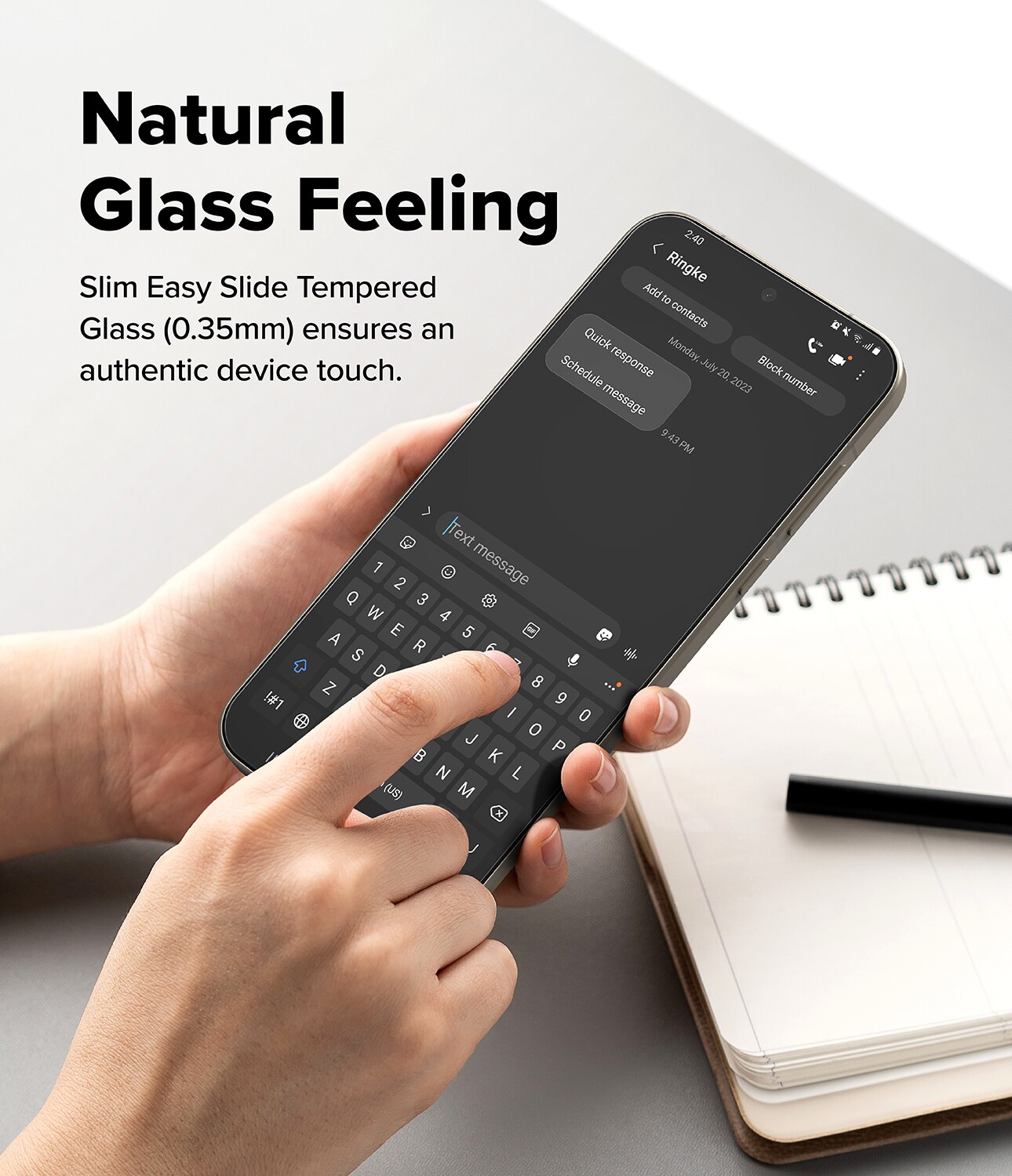 2-pack of transparent screen protectors in tempered glass for OnePlus 15 from Ringke. The screen protectors are made of tempered glass with high transparency and hardness. The edges are beveled to prevent sharpness.