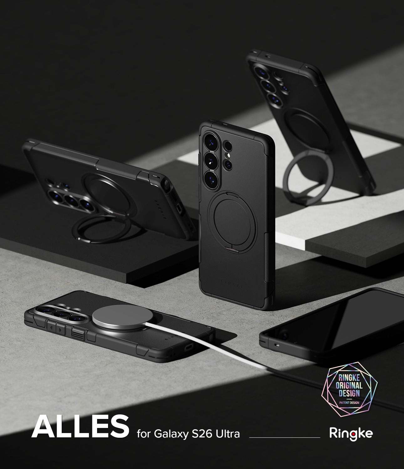 Alles Magnetic är ett väldigt praktiskt skal från Ringke till Samsung Galaxy S26 Ultra. Ett skal med den oslagbara kombinationen av snygg design och bra stötskydd. Skalet har förstärkta hörn, upphöjda kanter och taktila knappar. MagSafe-stödet gör att du kan använda MagSafe-tillbehör och MagSafe-ladda med skalet på. Skalet har även ett inbyggt kickstand så att du smidigt kan ställa upp din telefon när det önskas.