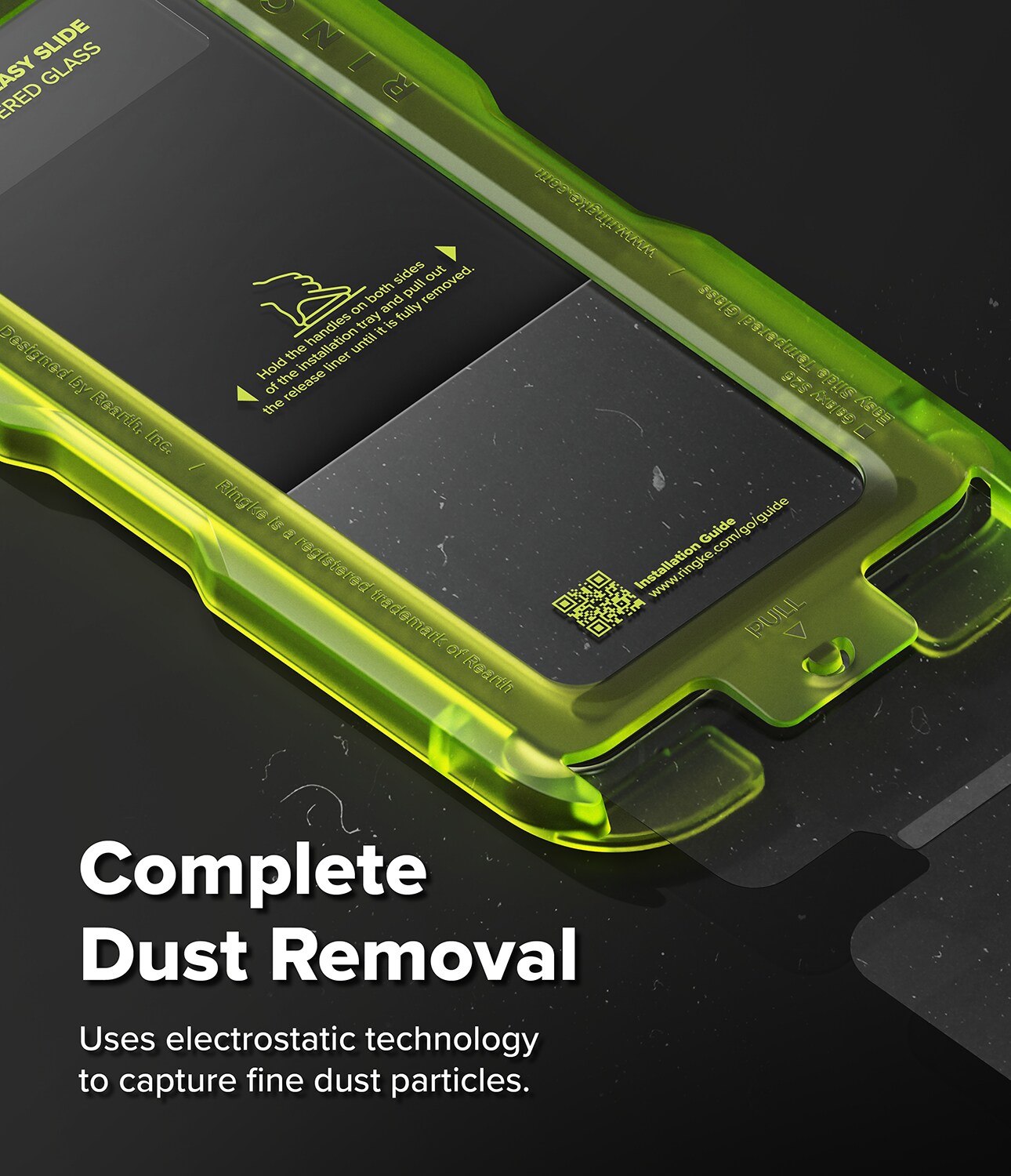 Installationen är otroligt enkel, tack vare det medföljande praktiska installationsverktyget. Det gör det möjligt att fästa skärmskyddet helt rakt på skärmen utan besvär.