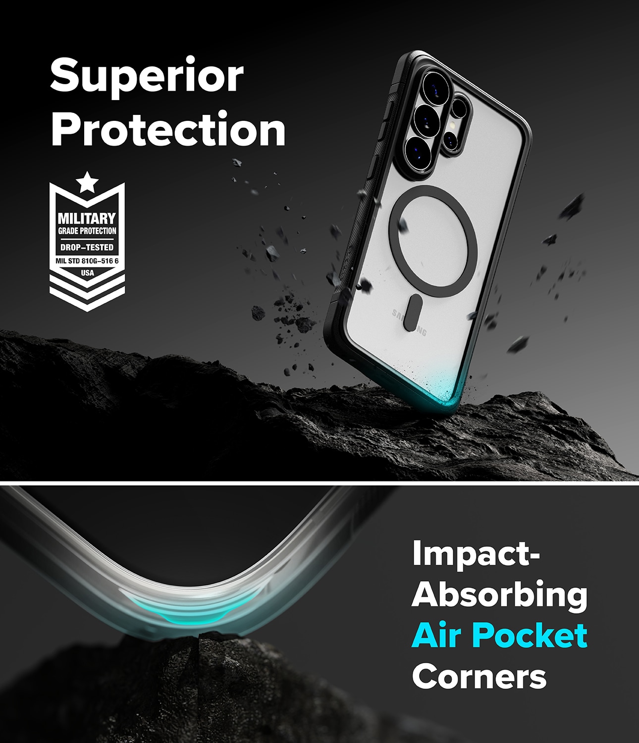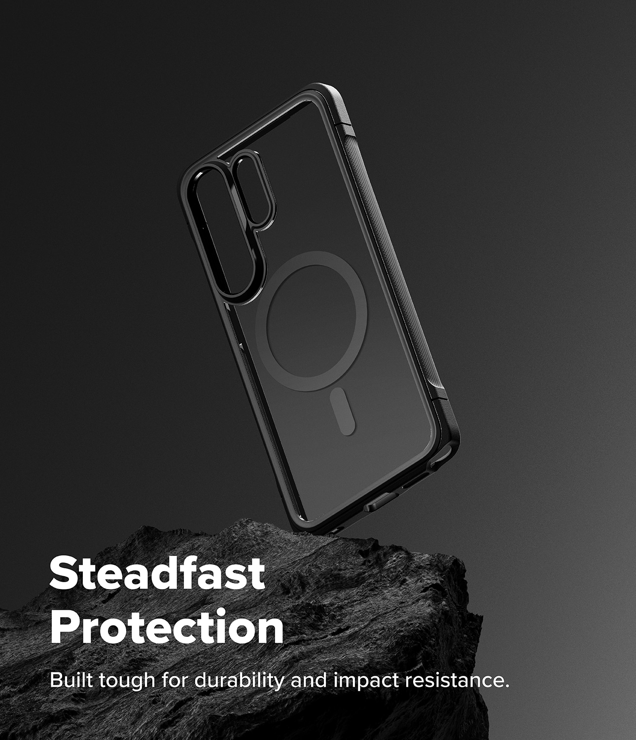 Snyggt skal med stöd för MagSafe från Ringke till Samsung Galaxy S26 Ultra. Ringke Fusion Bold ger din telefon ett optimalt skydd nästan utan att synas. För bästa skydd har skalet har en stötdämpande ram som absorberar fall och en baksida i hård polykarbonat.