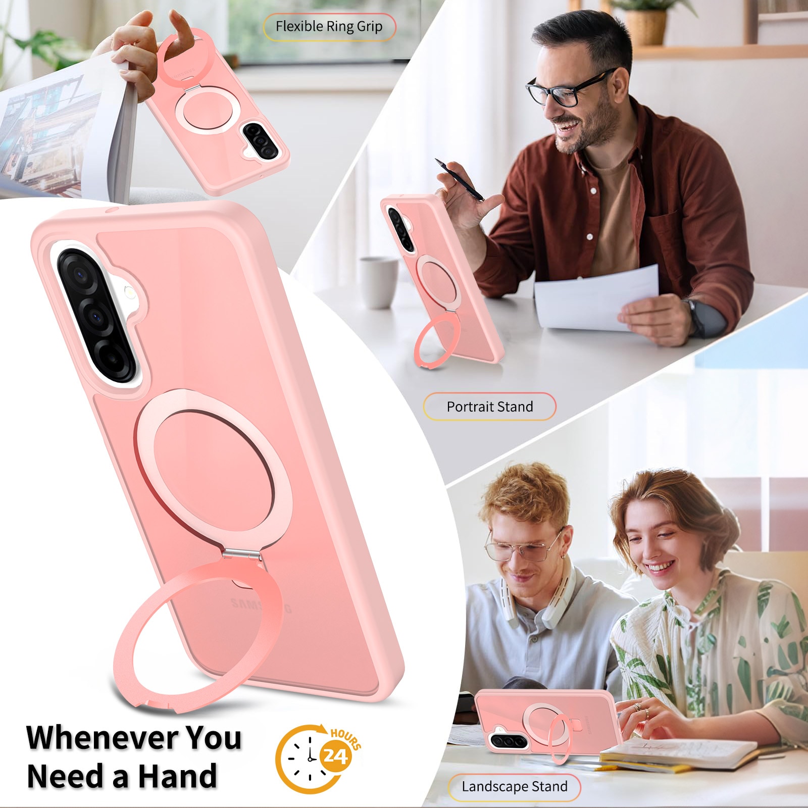 Mobilskal med utfällbar magnetisk ring till Samsung Galaxy A16. För bästa skydd mot stötar och fall är skalet tvådelat med en TPU-kärna och ett hölje i hårdplast. Ringen på baksidan är magnetisk och kan användas tllsammans med MagSafe-kompatibla tillbehör såsom laddare och korthållare. Ringen kan även bilda ett ställ för att se på film, klipp eller för att spela.