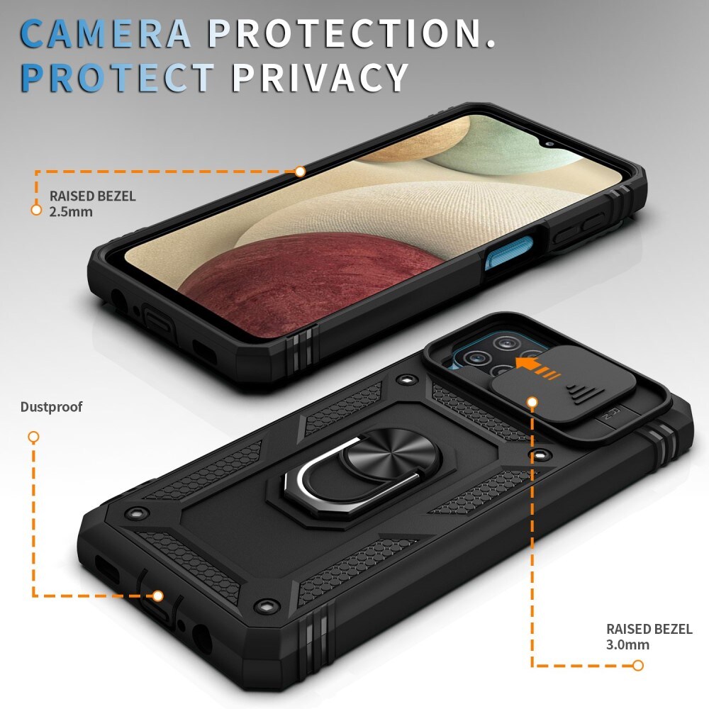 Hybrid case with foldable ring for Samsung Galaxy A42 5G. For optimal protection against drops and impacts, the case features a three-part design with a TPU core, a hard plastic shell, and a protective frame around the screen. The ring on the back can be folded out to provide a secure grip on the phone. It can also be used as a stand for watching movies, videos, or playing games.