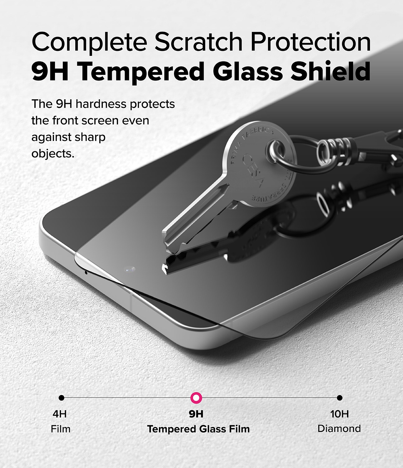 2-pack of transparent screen protectors in tempered glass for Samsung Galaxy A56 from Ringke. The screen protectors are made of tempered glass with high transparency and hardness. The edges are beveled to prevent sharpness.