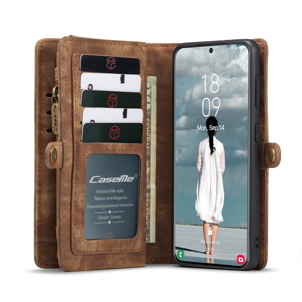 Mobile phone case with magnetic shell and wallet with extra card slots from CaseMe. The spacious wallet has several card slots, a bill pocket, and a zipper coin pocket. The phone is securely held in place and protected in the shock-absorbing magnetic shell, which is removable, allowing you to take it off the case when you are at home, work or traveling.