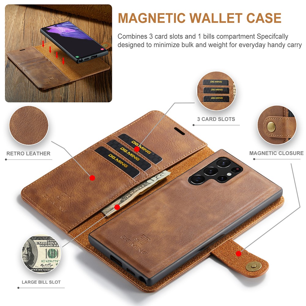 Wallet Case with detachable magnetic inner case from DG.MING. The case has a classic and elegant design. The detachable inner case allows you to choose if you want to use the entire case, or just the shell, for example when you are at home or at work.