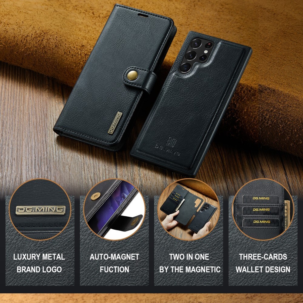 Wallet Case with detachable magnetic inner case from DG.MING. The case has a classic and elegant design. The detachable inner case allows you to choose if you want to use the entire case, or just the shell, for example when you are at home or at work.
