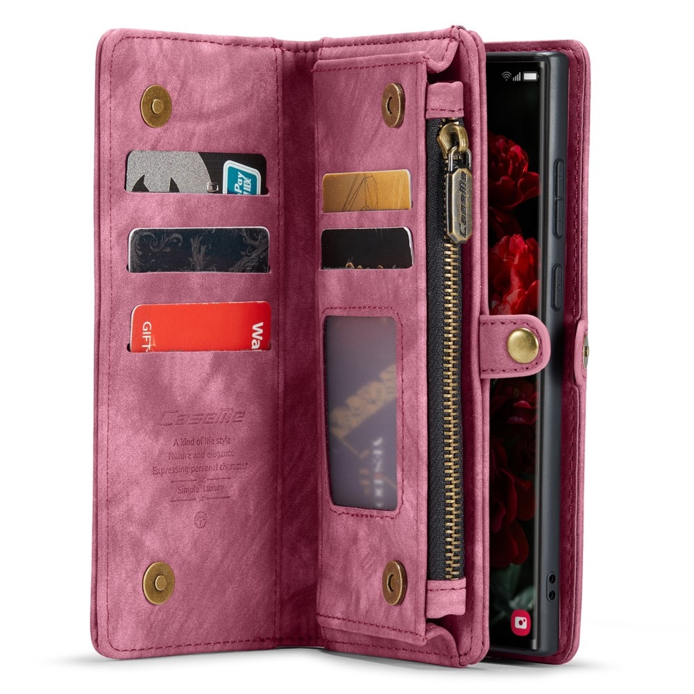 Mobile phone case with magnetic shell and wallet with extra card slots from CaseMe. The spacious wallet has several card slots, a bill pocket, and a zipper coin pocket. The phone is securely held in place and protected in the shock-absorbing magnetic shell, which is removable, allowing you to take it off the case when you are at home, work or traveling.