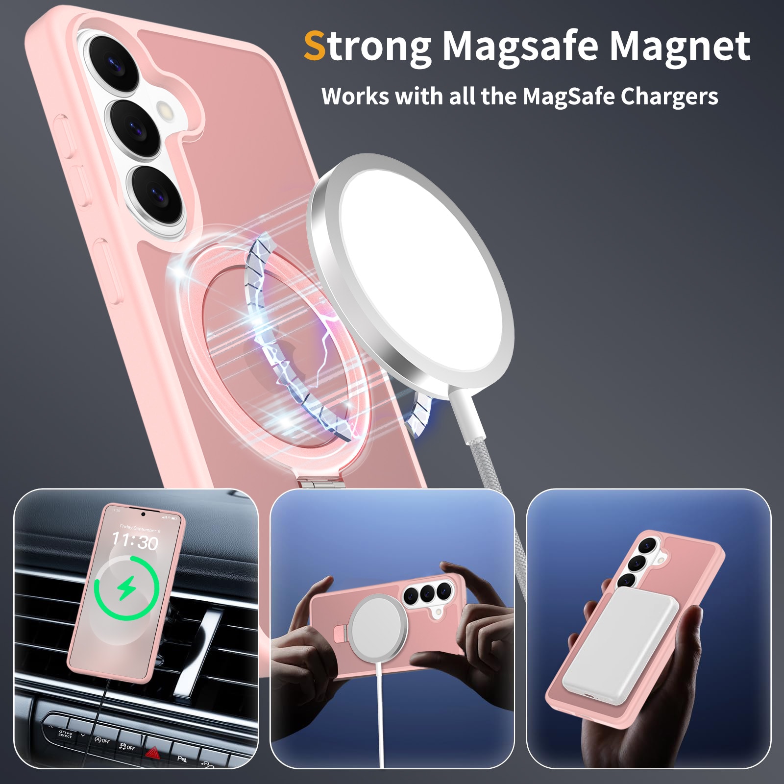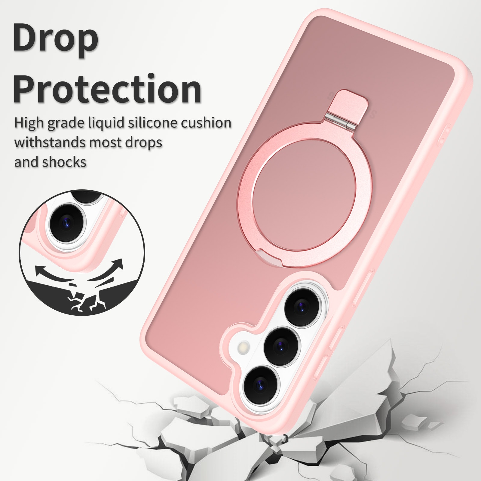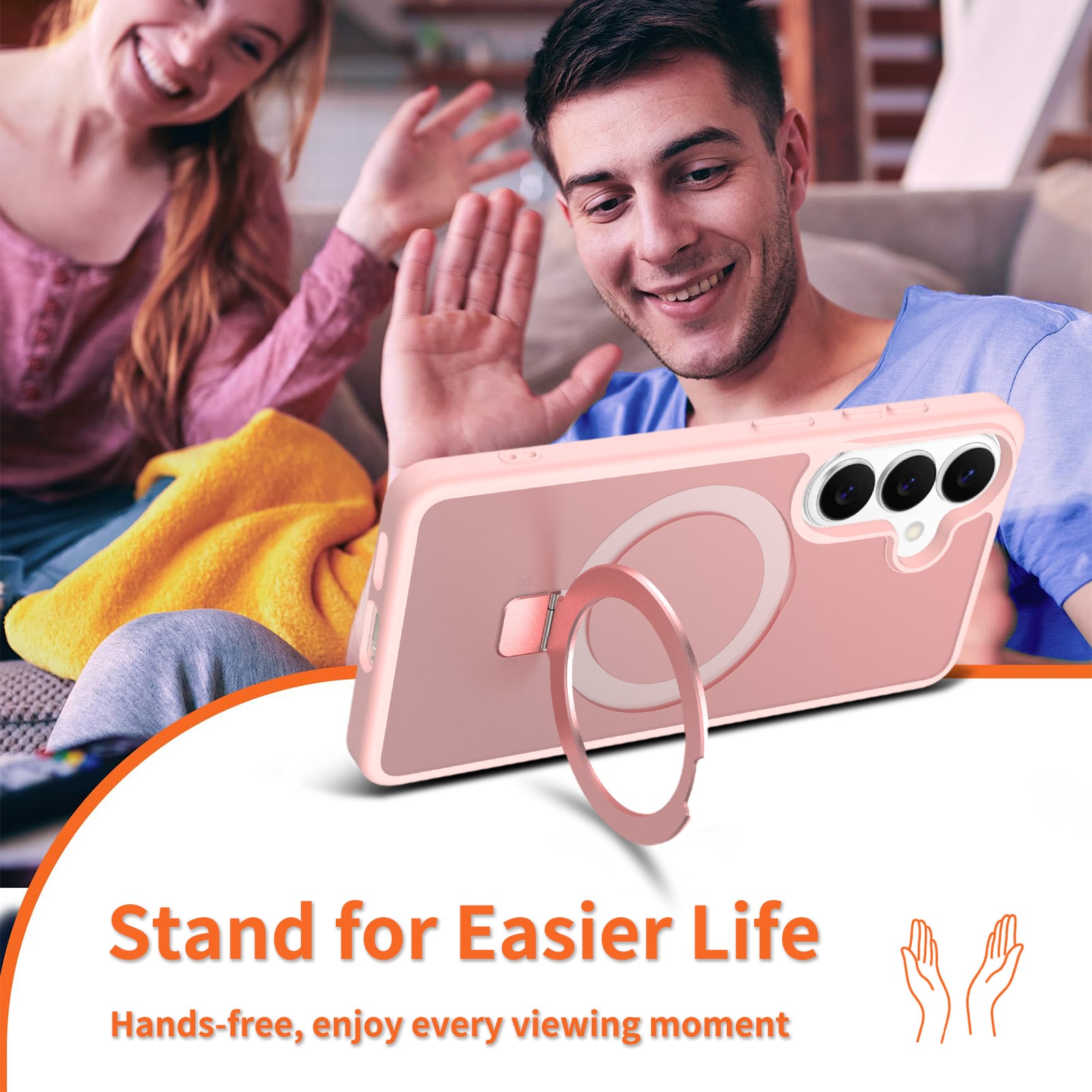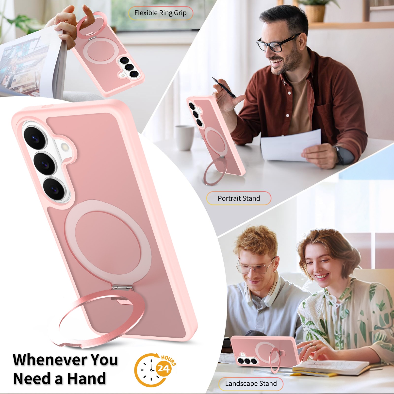 Mobilskal med utfällbar magnetisk ring till Samsung Galaxy S26. För bästa skydd mot stötar och fall är skalet tvådelat med en TPU-kärna och ett hölje i hårdplast. Ringen på baksidan är magnetisk och kan användas tllsammans med MagSafe-kompatibla tillbehör såsom laddare och korthållare. Ringen kan även bilda ett ställ för att se på film, klipp eller för att spela.