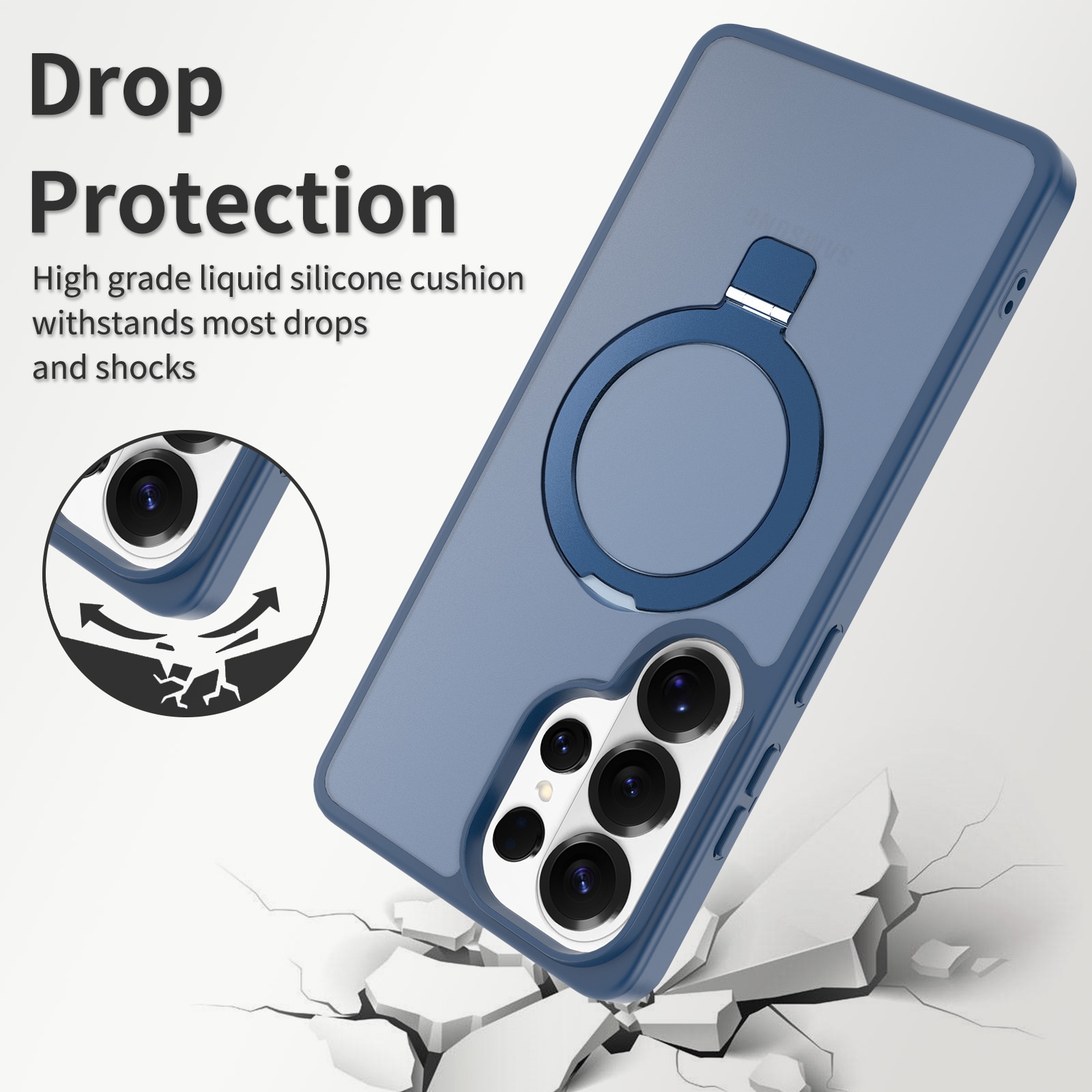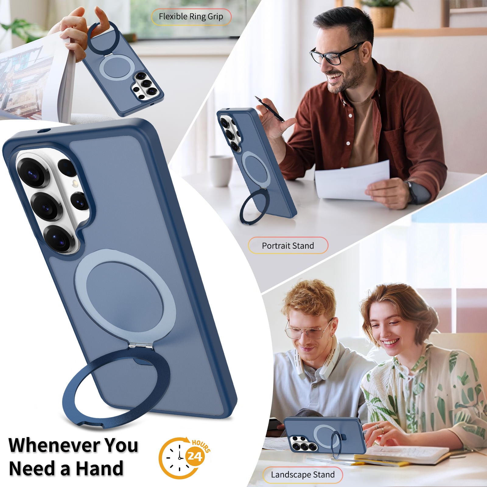 Mobilskal med utfällbar magnetisk ring till Samsung Galaxy S26 Ultra. För bästa skydd mot stötar och fall är skalet tvådelat med en TPU-kärna och ett hölje i hårdplast. Ringen på baksidan är magnetisk och kan användas tllsammans med MagSafe-kompatibla tillbehör såsom laddare och korthållare. Ringen kan även bilda ett ställ för att se på film, klipp eller för att spela.