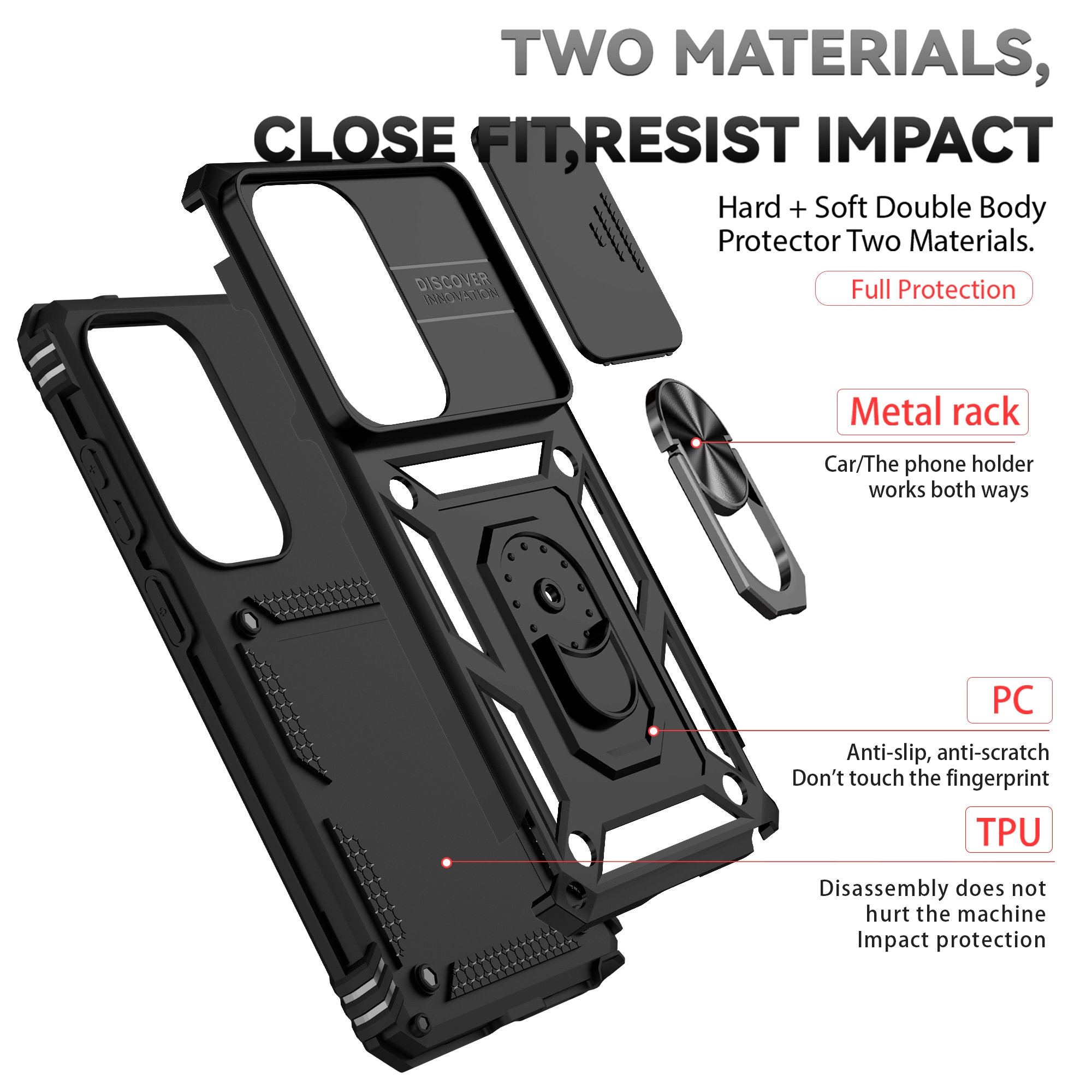 - Stötdämpande hybridskal med kameralucka och greppring