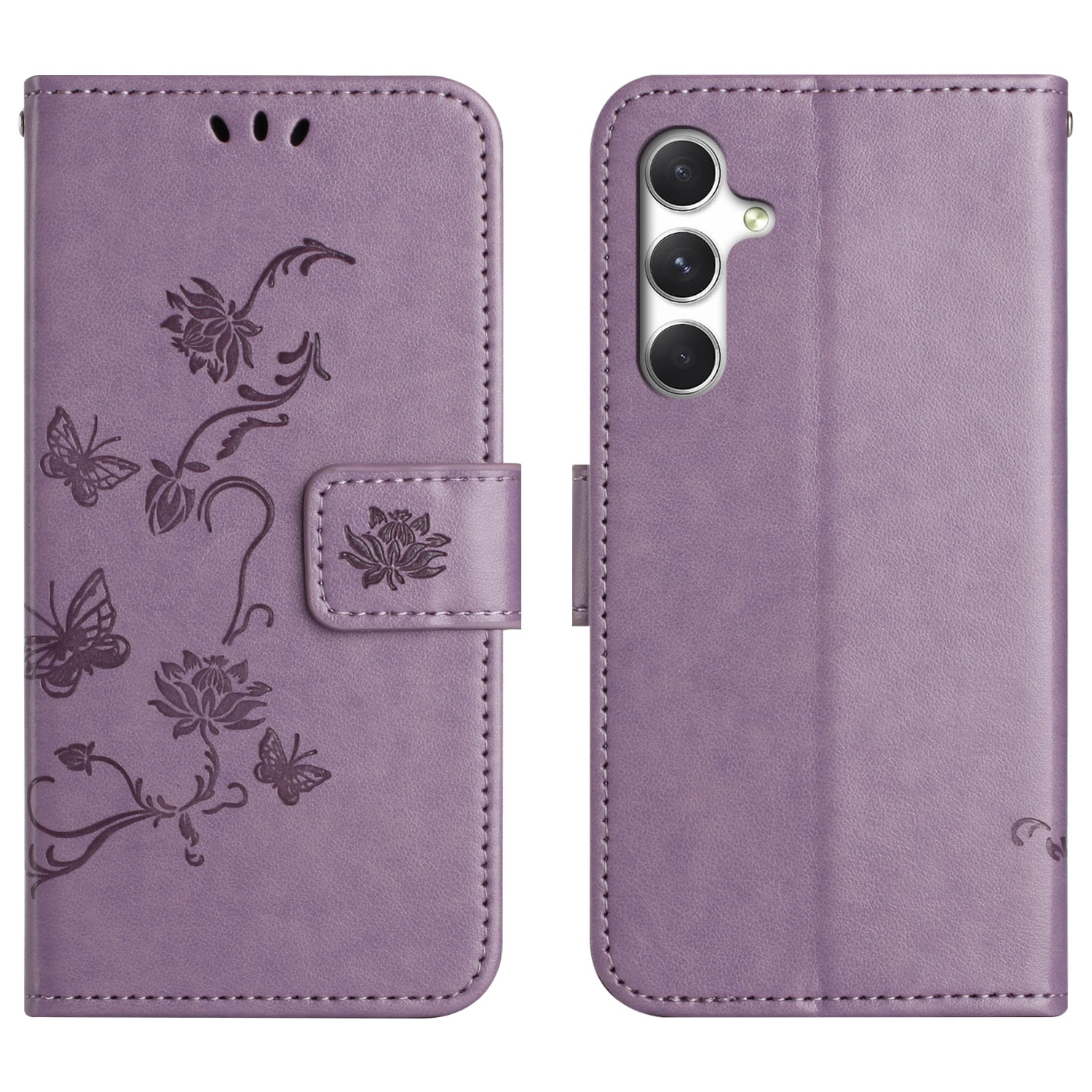 Mobilfodral med fjärilar och mönster stansat i lädret till Samsung Galaxy A57. Plånboksfodralet har ett snyggt utseende och skyddar runt om hela telefonen så att du undviker skador, repor och smuts.