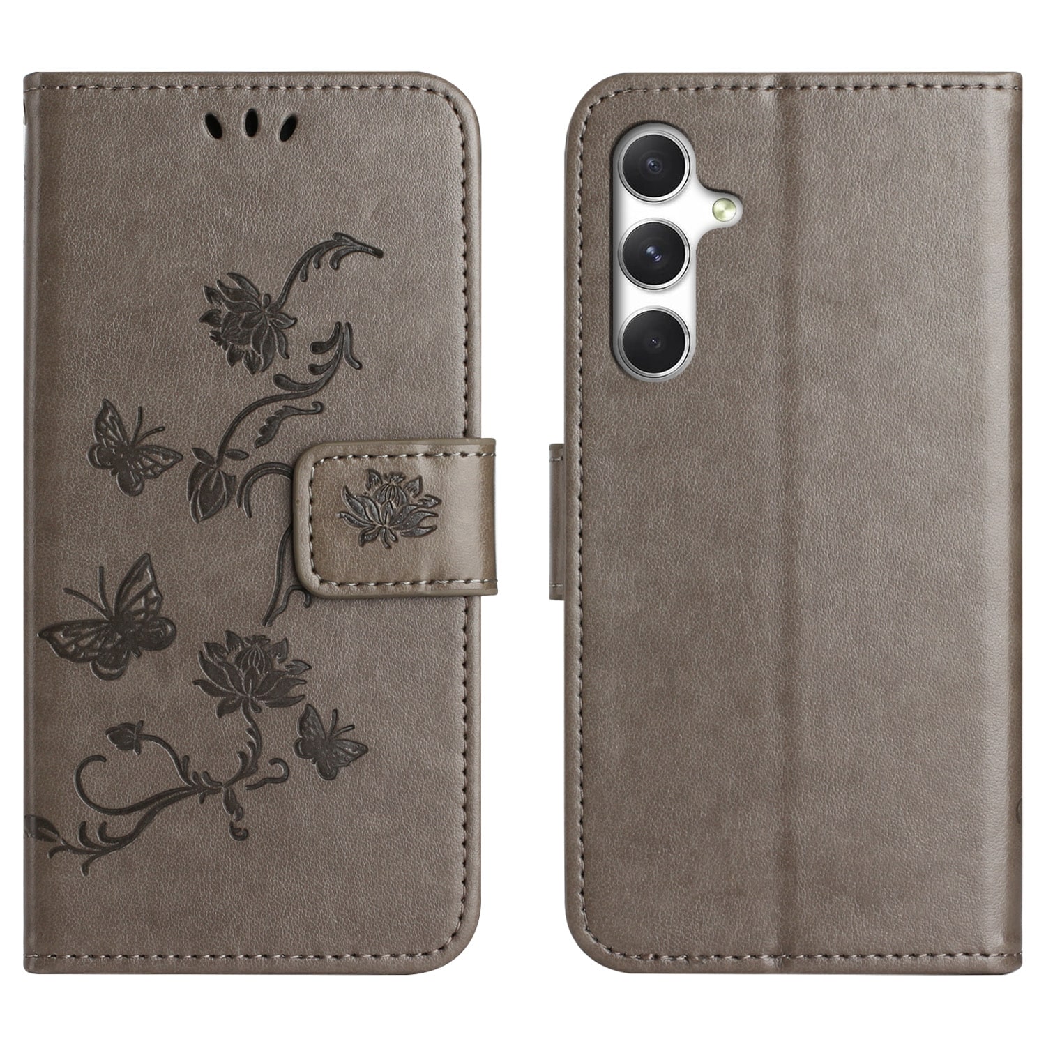 Mobilfodral med fjärilar och mönster stansat i lädret till Samsung Galaxy A57. Plånboksfodralet har ett snyggt utseende och skyddar runt om hela telefonen så att du undviker skador, repor och smuts.