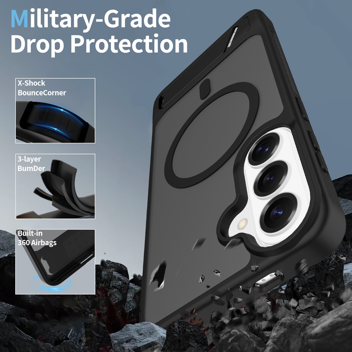 Den magnetiska ringen på baksidan är kompatibel med MagSafe-tillbehör som trådlösa laddare och korthållare för en smidig och bekväm användning.
