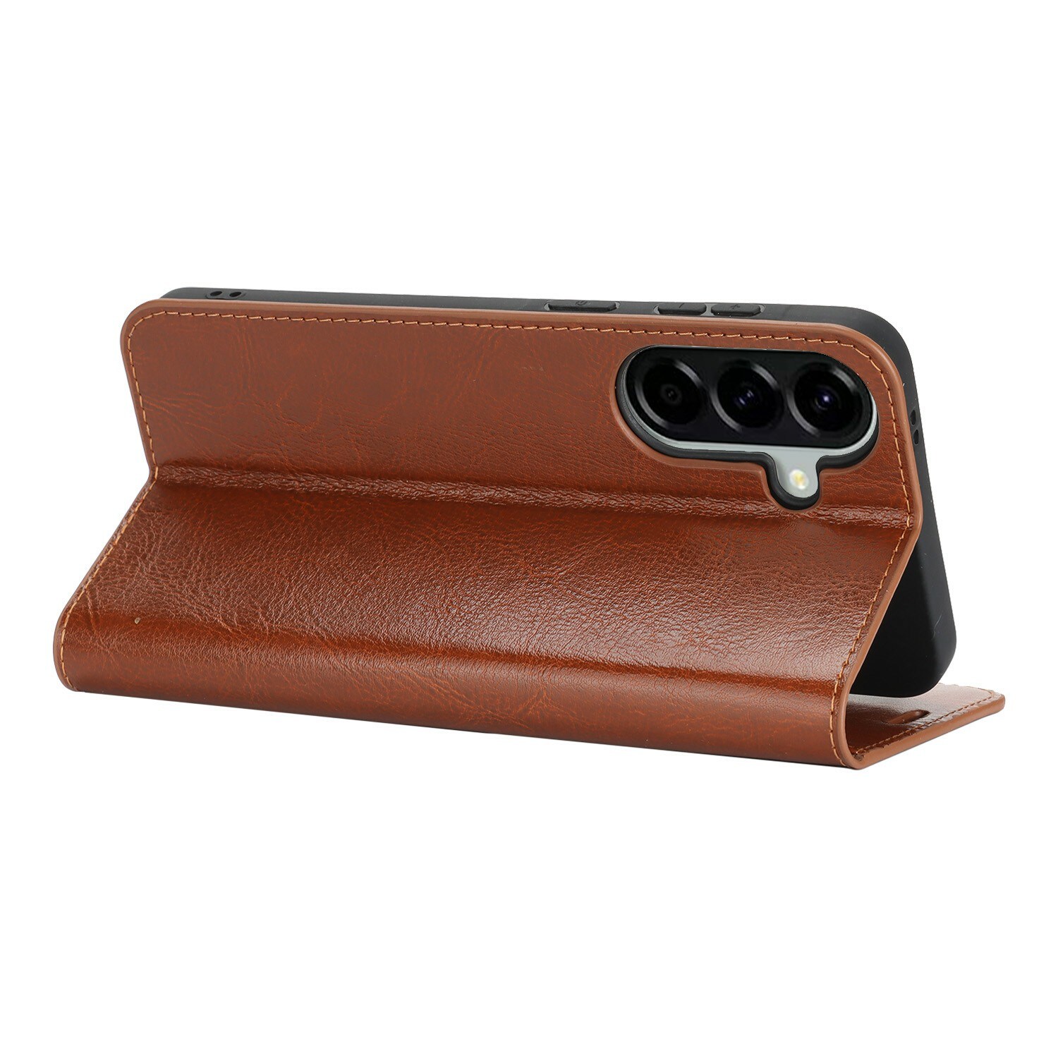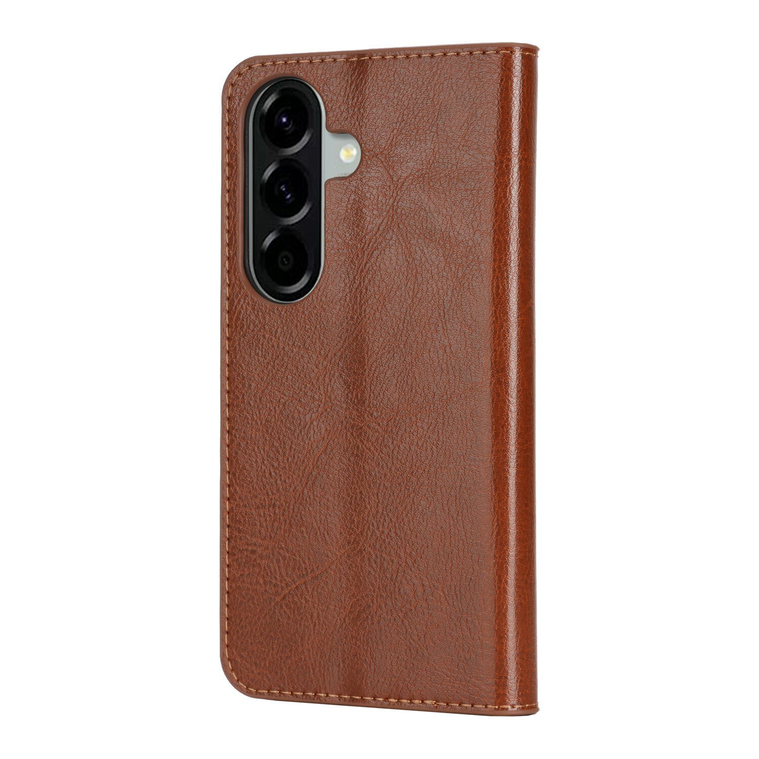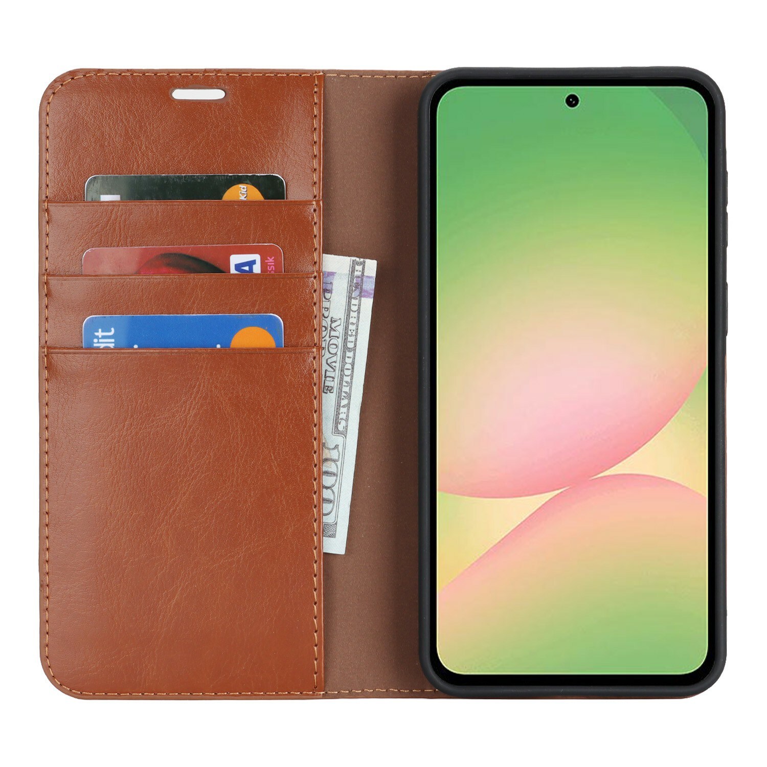 Skydda din Samsung Galaxy A57 med ett fodral i äkta läder. Trots sin tunna och smarta design har fodralet 3 stycken kortfack och 1 sedelfack på insidan av locket. Telefonen klickas i ett flexibelt skal för att sitta säkert fast i fodralet.