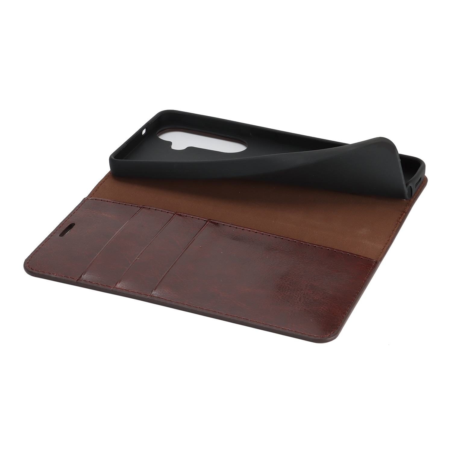 Skydda din Samsung Galaxy S26 Plus med ett fodral i äkta läder. Trots sin tunna och smarta design har fodralet 3 stycken kortfack och 1 sedelfack på insidan av locket. Telefonen klickas i ett flexibelt skal för att sitta säkert fast i fodralet.