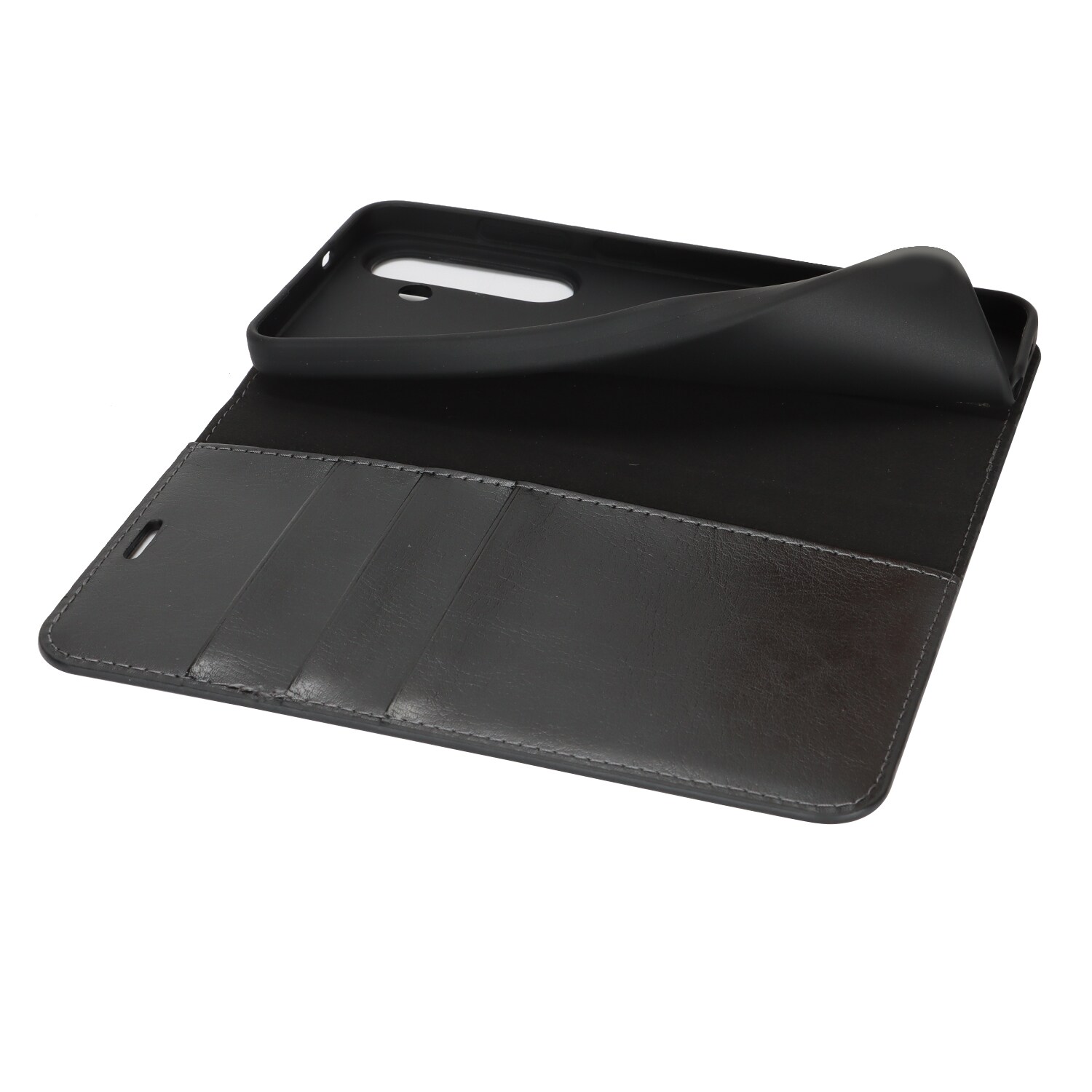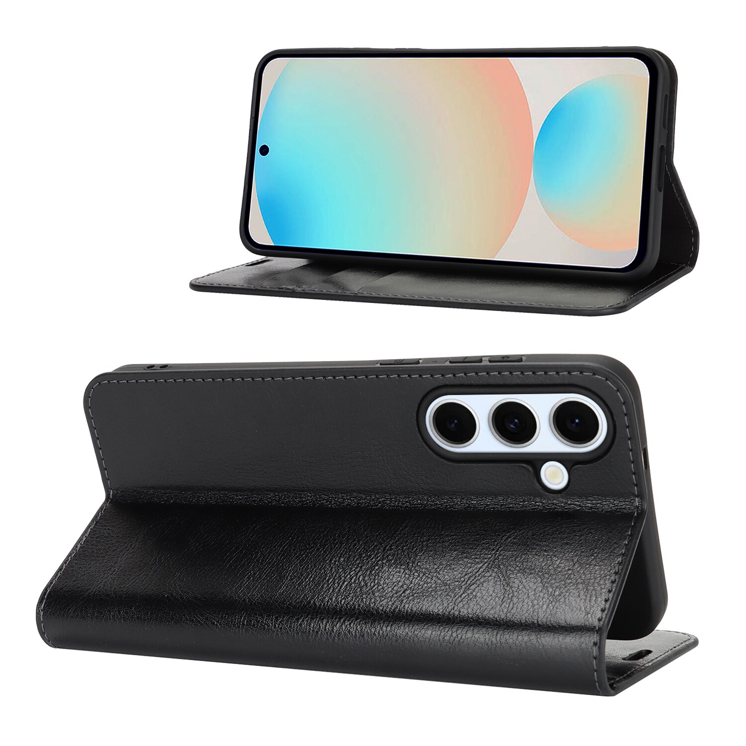 Protect your Samsung Galaxy S25 FE with a sleek case made from genuine leather. Despite its slim and stylish design, the case features 3 card slots and 1 cash pocket on the inside of the cover. Your phone is securely held in place with a flexible inner shell.