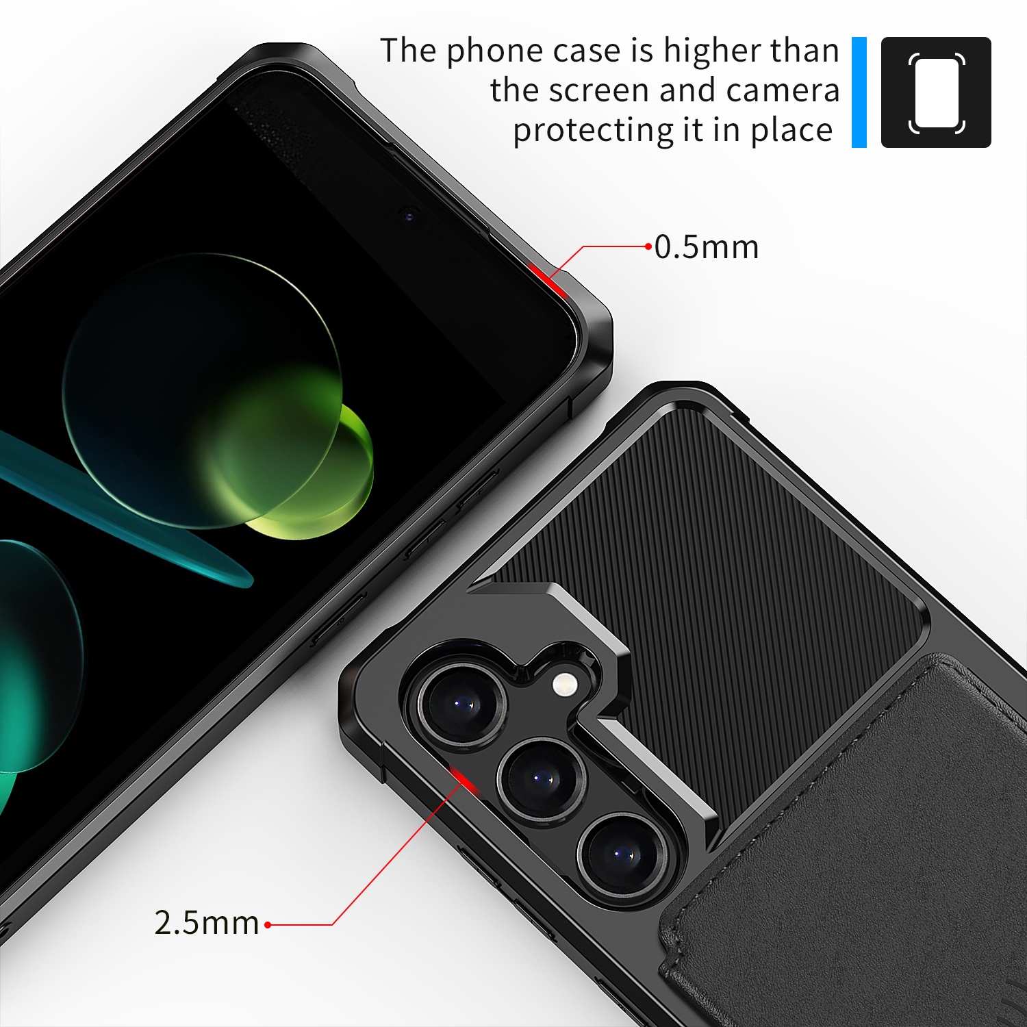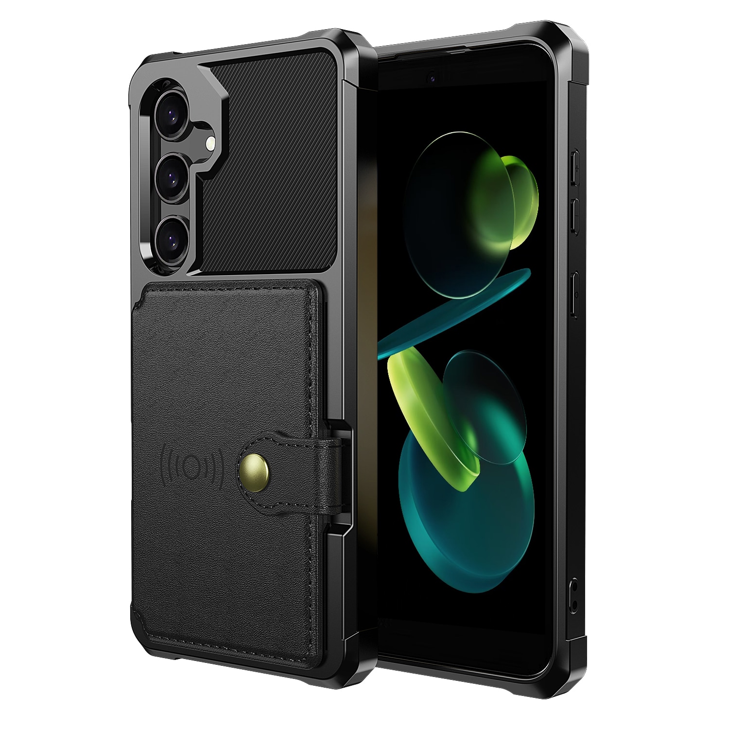Shock-absorbing phone case with a hidden wallet on the back for Samsung Galaxy S25 FE. The case features a stylish design and reinforced corners for the best protection.