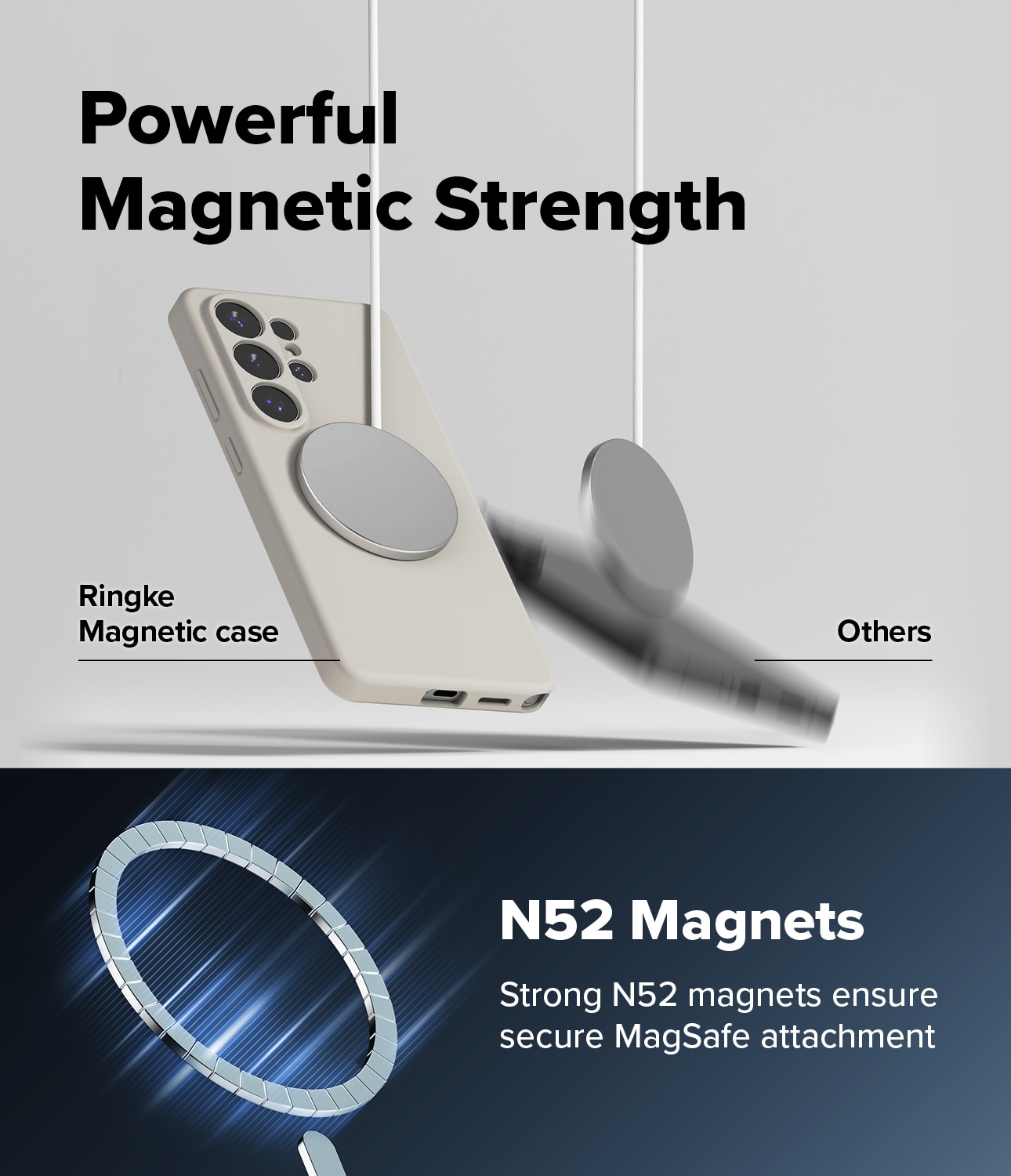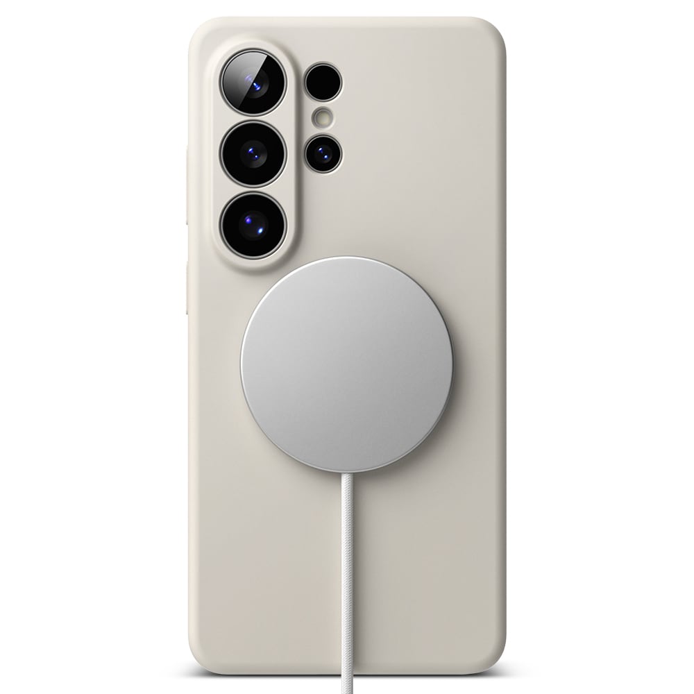 Stilrent silikonskal med MagSafe från Ringke till Samsung Galaxy S26 Ultra. Skalet är stötdämpande för att skydda mot skador och MagSafe-stödet gör att du kan använda MagSafe-tillbehör och MagSafe-ladda med skalet på.