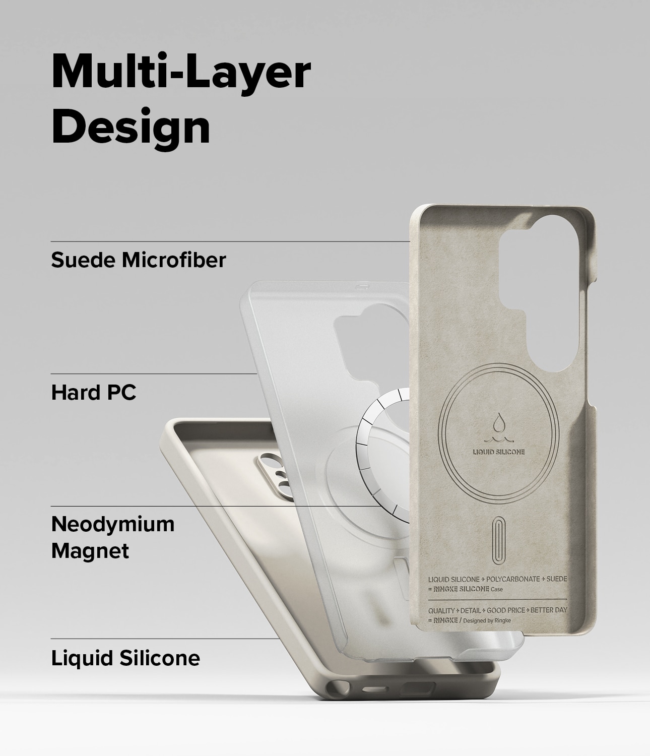 Det är tillverkat i tre lager för bästa skydd: utsida i slitstarkt och greppvänligt silikon, en kärna av hårdplast som skyddar mot stötar och fall, insida i mikrofiber som skyddar mot repor.