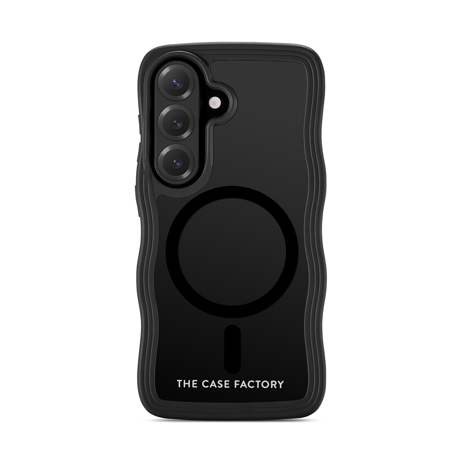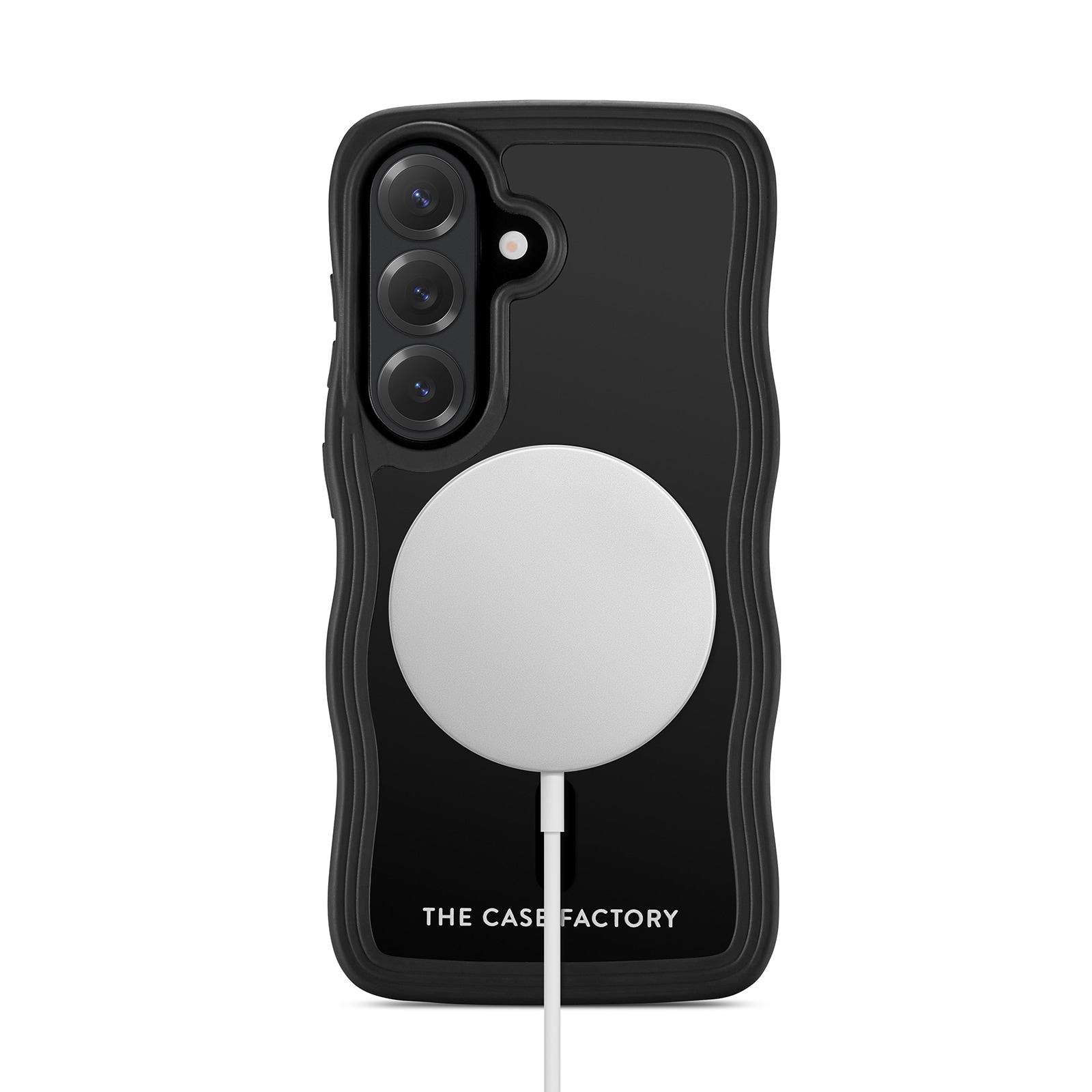 Elegant MagSafe-kompatibelt mobilskal med våginspirerad design till din Samsung Galaxy S26 Plus från The Case Factory. Skalet är tillverkat i stöttålig hårdplast och har en mjuk, flexibel TPU-ram som ger ett unikt och stilrent utseende. Den vågformade ramen gör skalet extra greppvänligt, ligger skönt i handen och minskar risken för att du tappar telefonen.