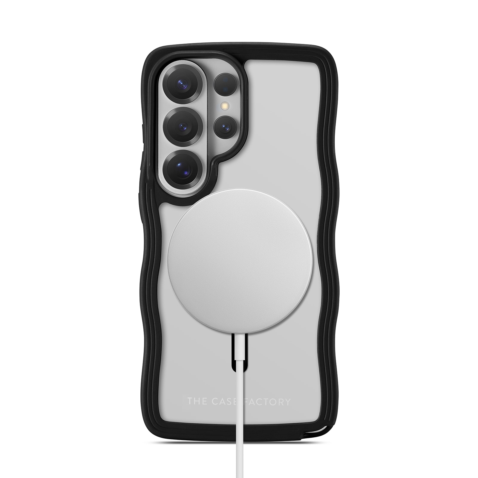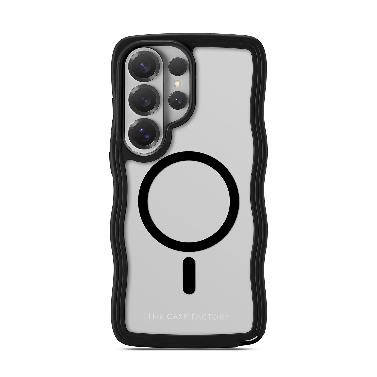 Elegant MagSafe-kompatibelt mobilskal med våginspirerad design till din Samsung Galaxy S26 Ultra från The Case Factory. Skalet är tillverkat i stöttålig hårdplast och har en mjuk, flexibel TPU-ram som ger ett unikt och stilrent utseende. Den vågformade ramen gör skalet extra greppvänligt, ligger skönt i handen och minskar risken för att du tappar telefonen.