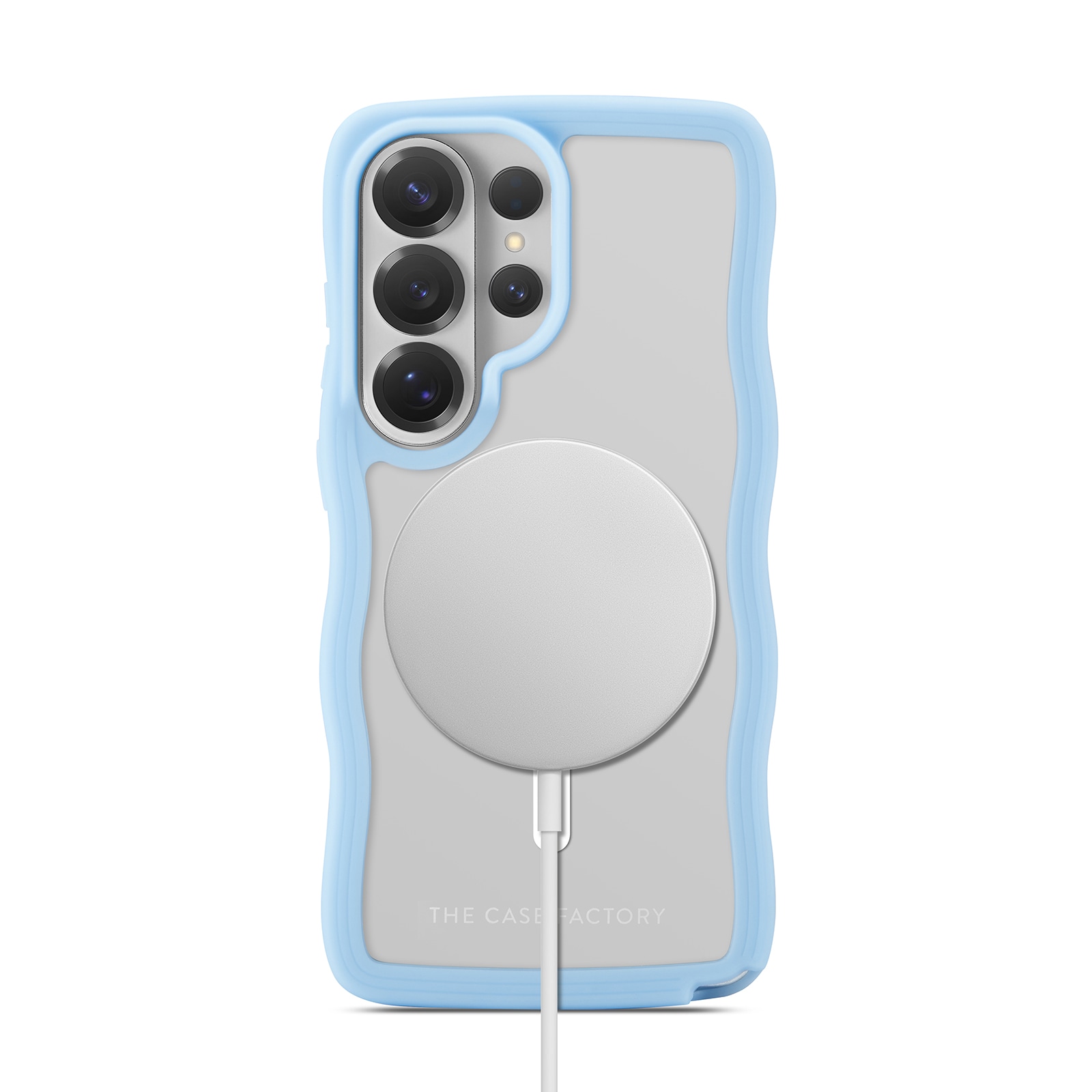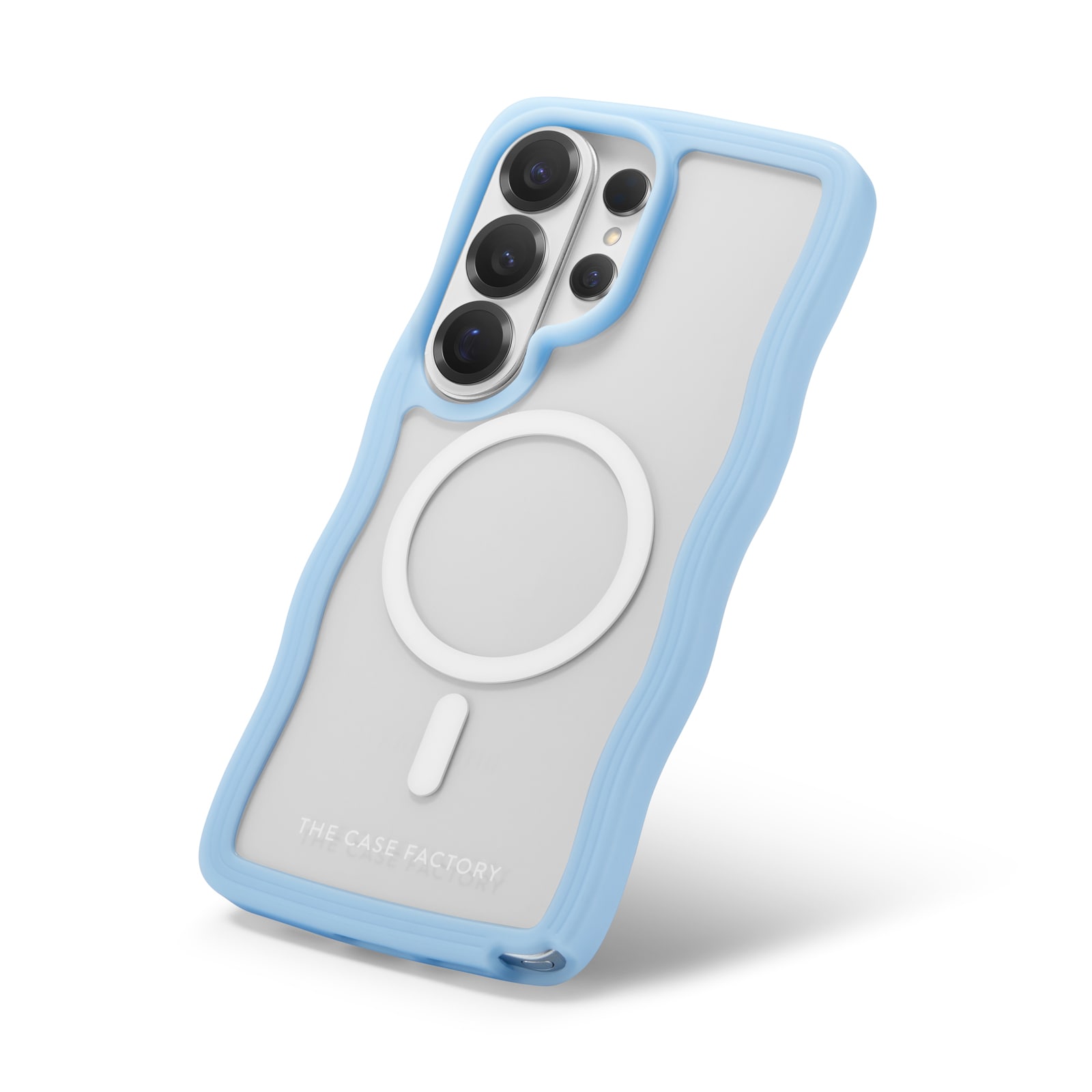 Elegant MagSafe-kompatibelt mobilskal med våginspirerad design till din Samsung Galaxy S26 Ultra från The Case Factory. Skalet är tillverkat i stöttålig hårdplast och har en mjuk, flexibel TPU-ram som ger ett unikt och stilrent utseende. Den vågformade ramen gör skalet extra greppvänligt, ligger skönt i handen och minskar risken för att du tappar telefonen.