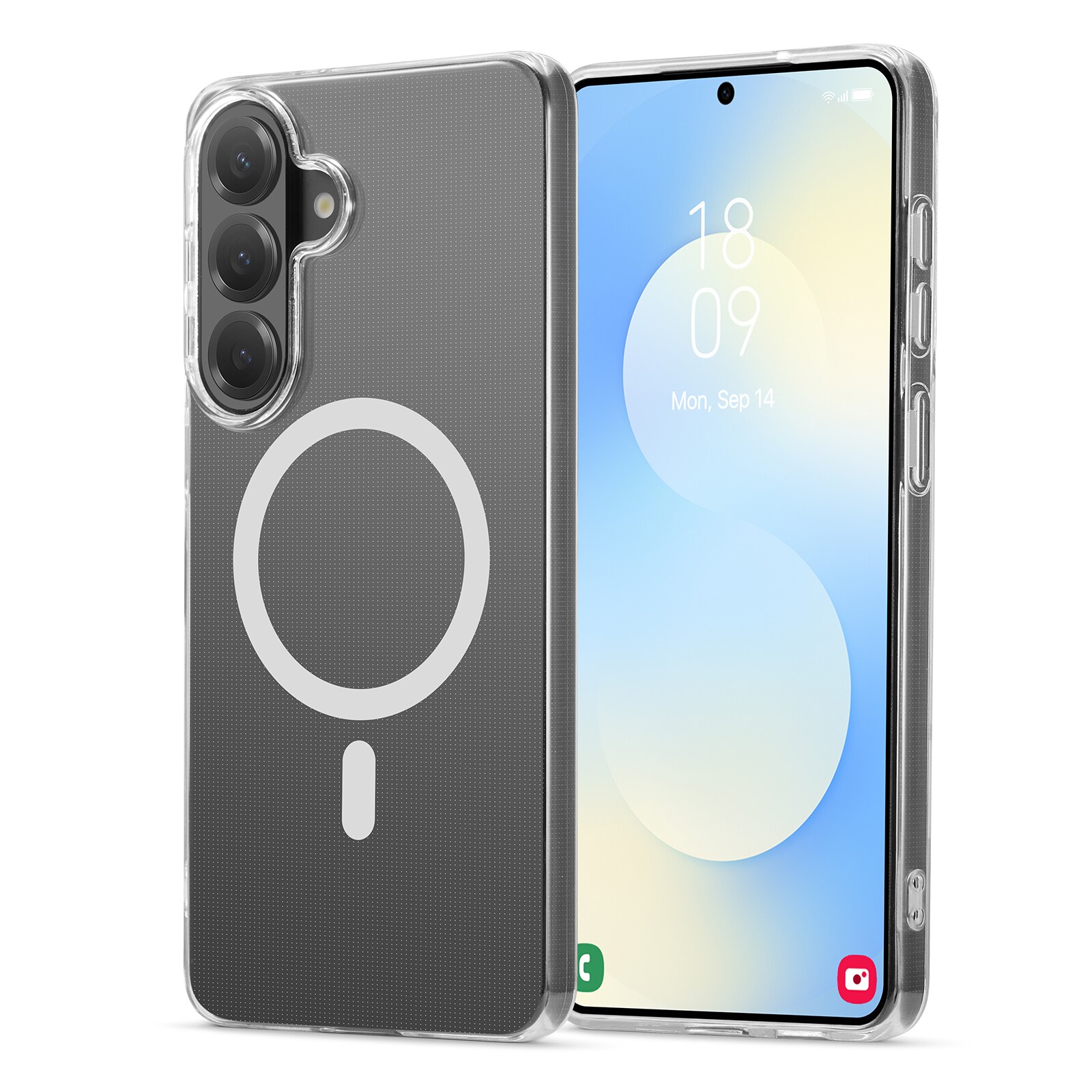 Skalet har en inbyggd magnetisk ring som fungerar sömlöst med MagSafe-tillbehör som laddare och korthållare.