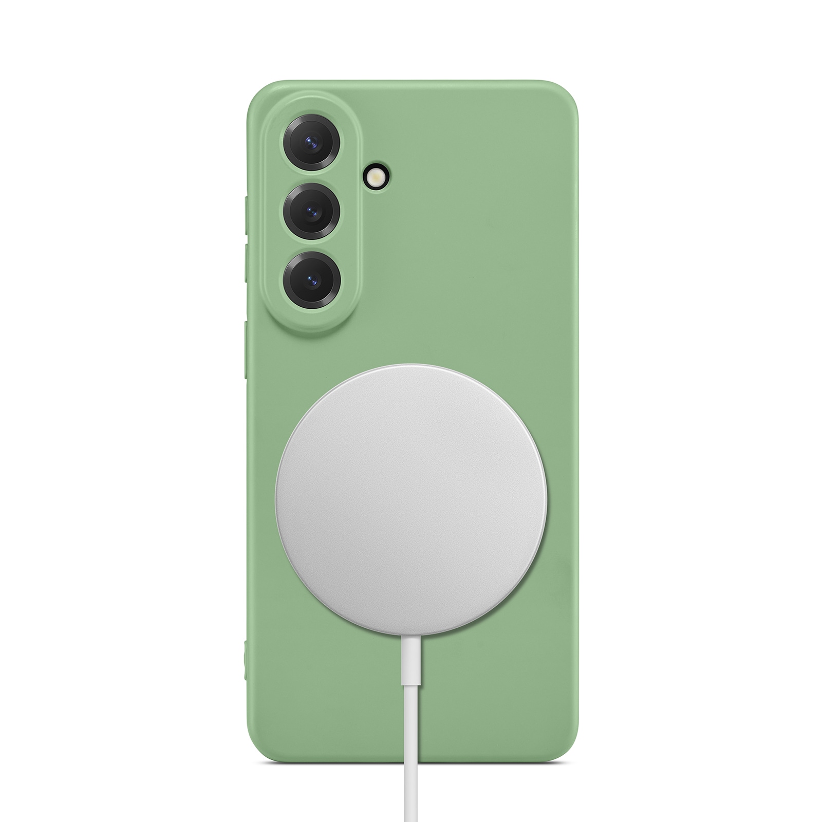 Skalet har en magnetisk ring på insidan och är kompatibelt med MagSafe-tillbehör som laddare och korthållare.