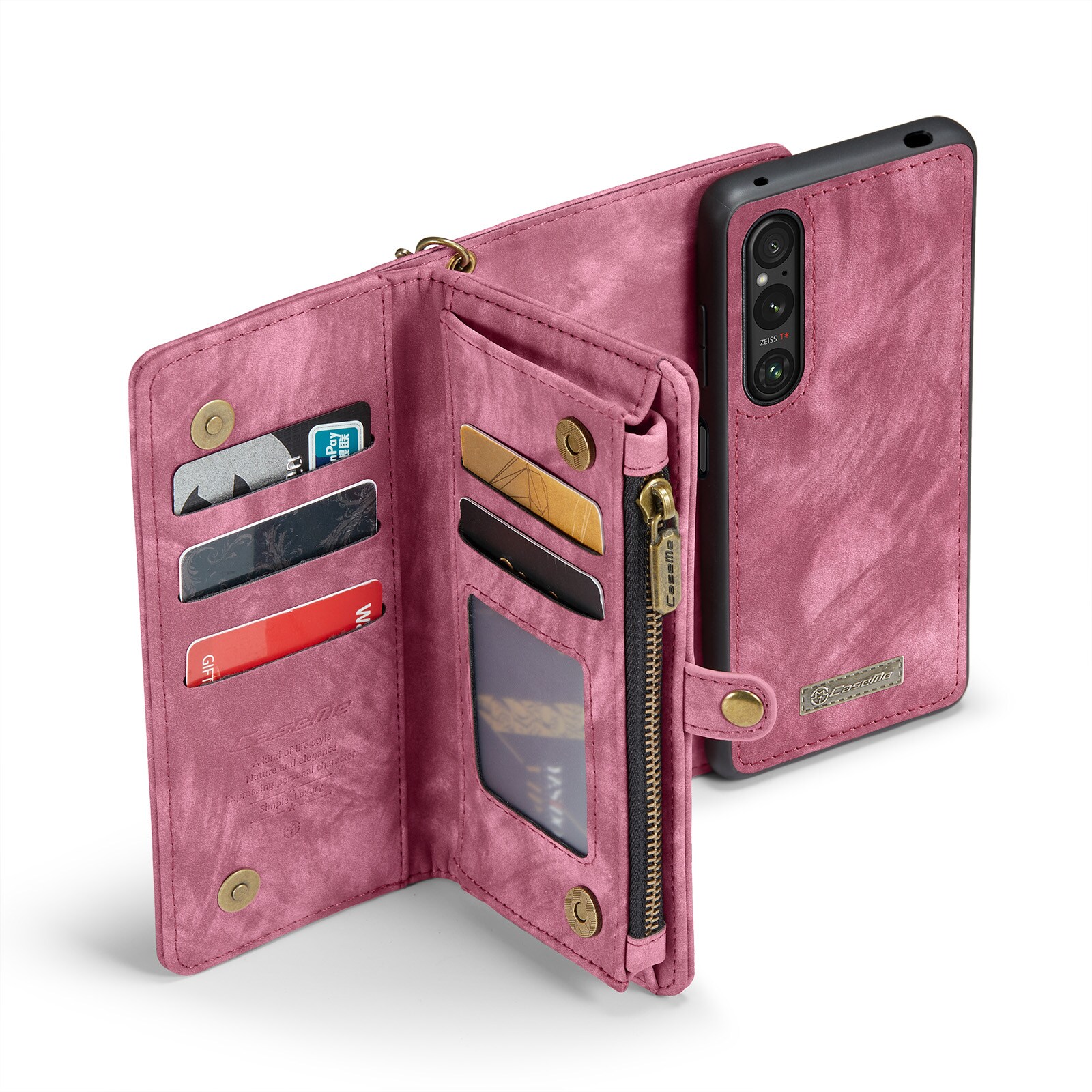 Mobile phone case with magnetic shell and wallet with extra card slots from CaseMe. The spacious wallet has several card slots, a bill pocket, and a zipper coin pocket. The phone is securely held in place and protected in the shock-absorbing magnetic shell, which is removable, allowing you to take it off the case when you are at home, work or traveling.