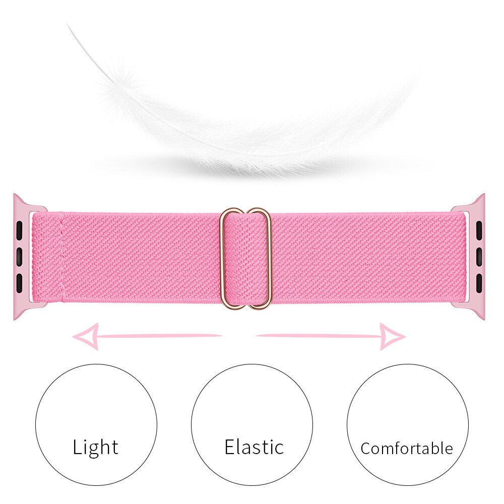 Comfortable elastic strap for Apple Watch Series 8 41mm. The strap easily adjusts to fit your wrist and is simple to take on and off. Made of durable nylon, it's the perfect choice for anyone who’s active or works out regularly - it's water-resistant and built to last. The soft elastic feels great against the skin and ensures a perfect fit for your watch.