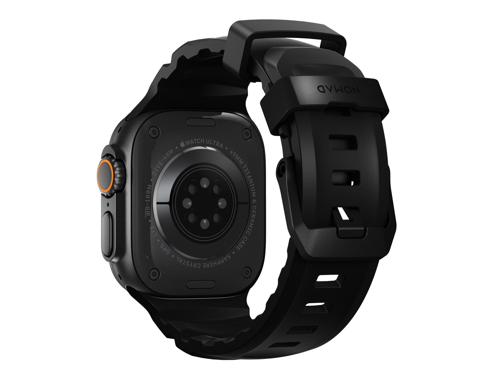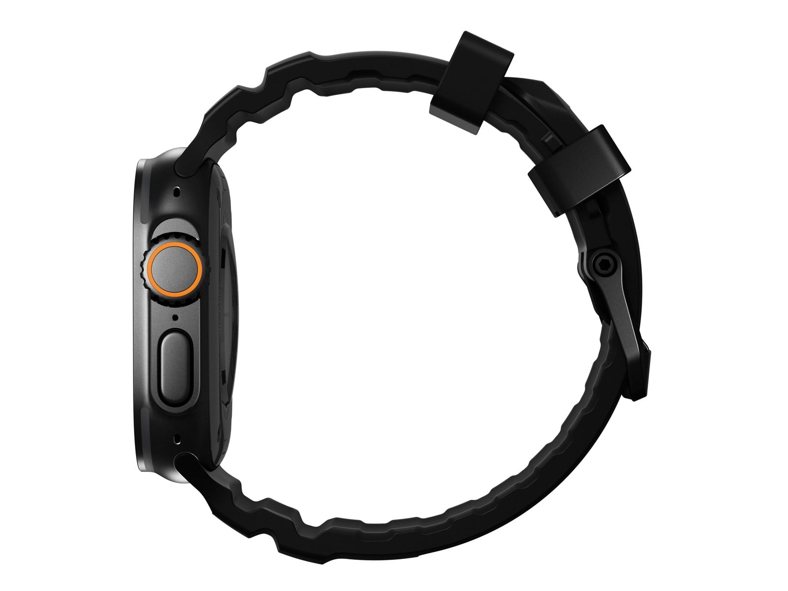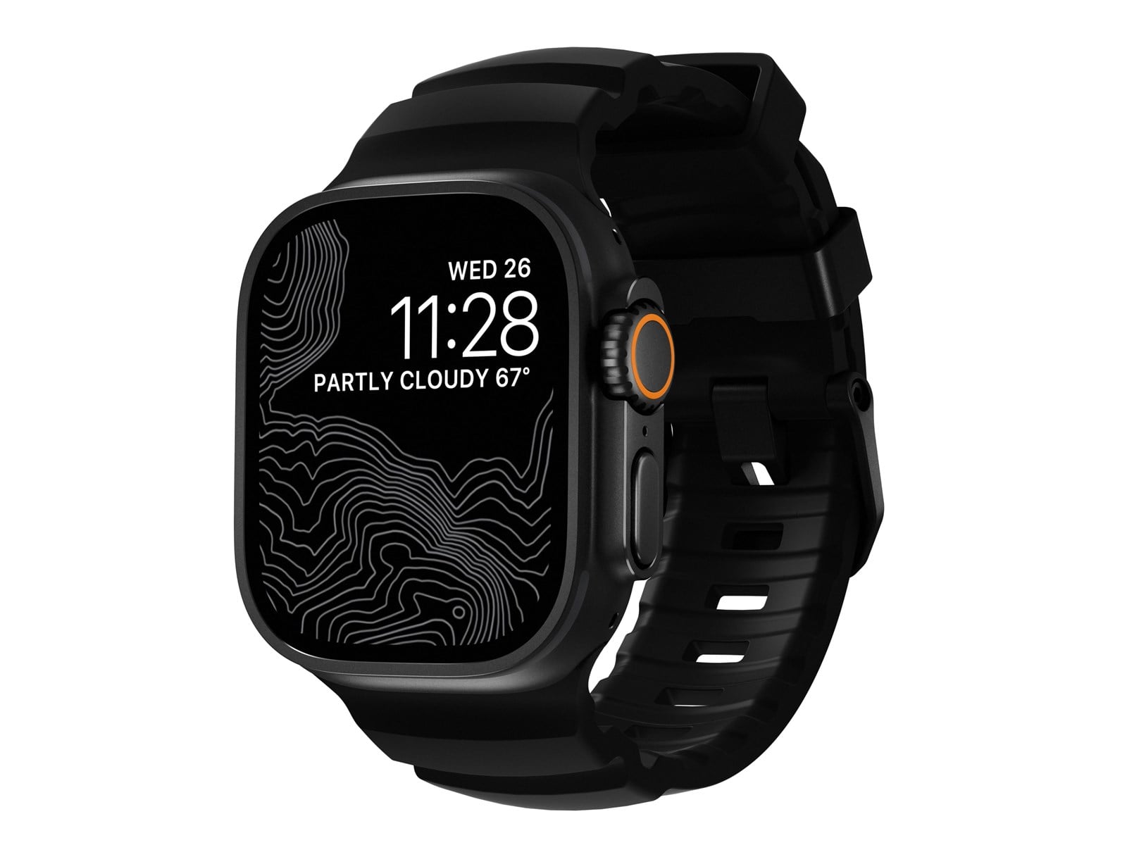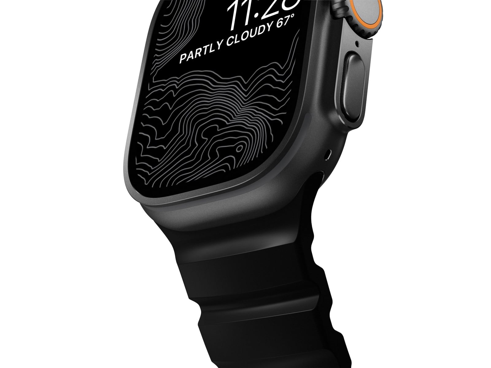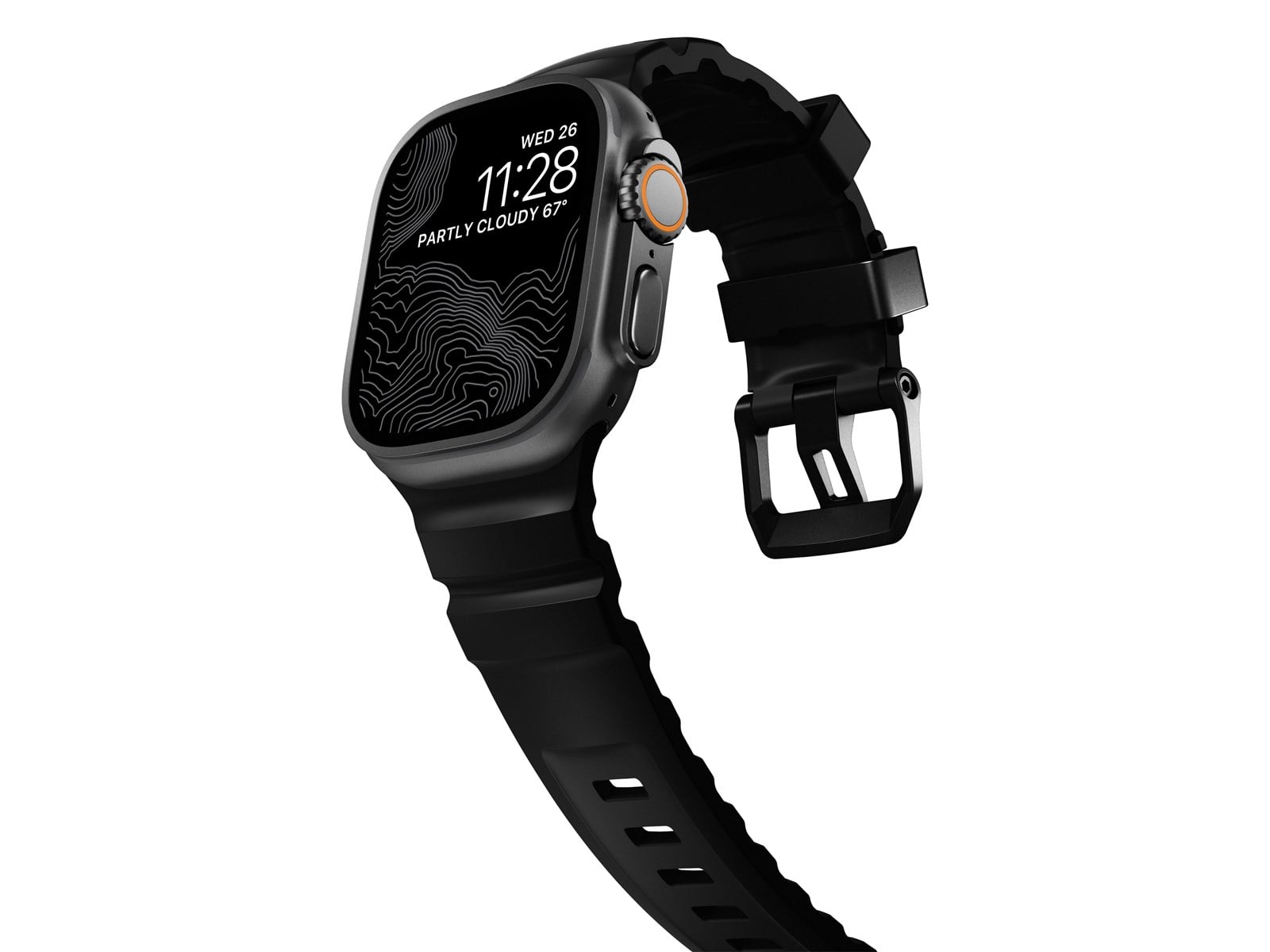 Robust och stilfullt armband till Apple Watch Ultra 49mm 3rd Gen frÄn Nomad. Armbandet Àr utmÀrkt att bÀra sÄvÀl till vardags som till trÀning dÄ det Àr tillverkat av slitstarkt och flexibelt gummi som andas vÀl. Den lena finishen och luftiga designen gör att det ligger bekvÀmt mot handleden.
