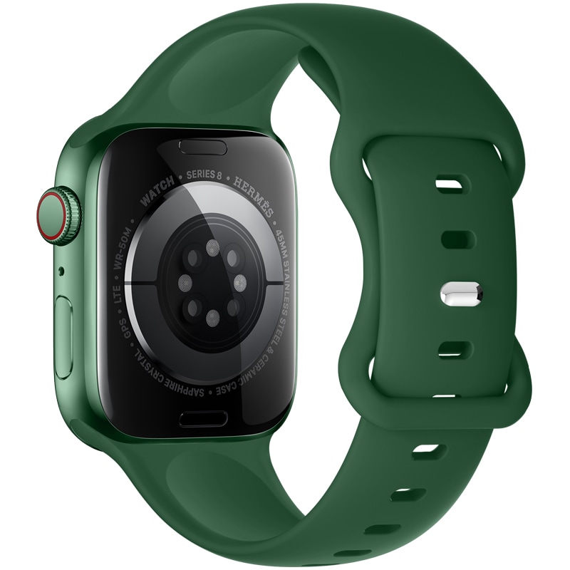 Armband i slitstarkt och vattentåligt silikon till Apple Watch SE 3 44mm. Då armbandet är tillverkat helt i silikon står det emot all typ av väta vilket gör det till ett perfekt armband för dig som tränar och är aktiv eller bär klockan hela dagen.
