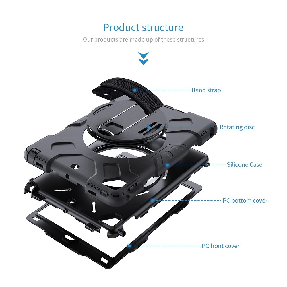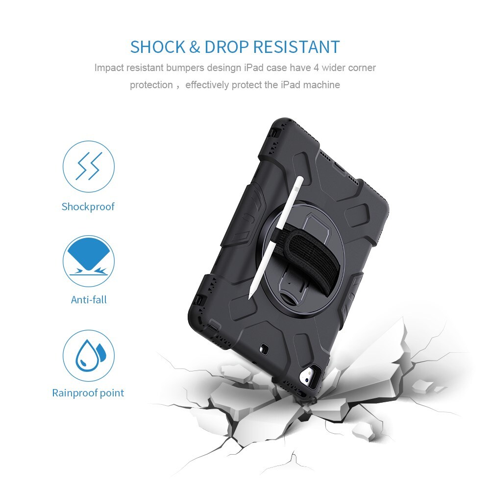 Apple iPad Air 2 9.7 (2014) Shockproof Hybrid Case w. Shoulder Strap Black