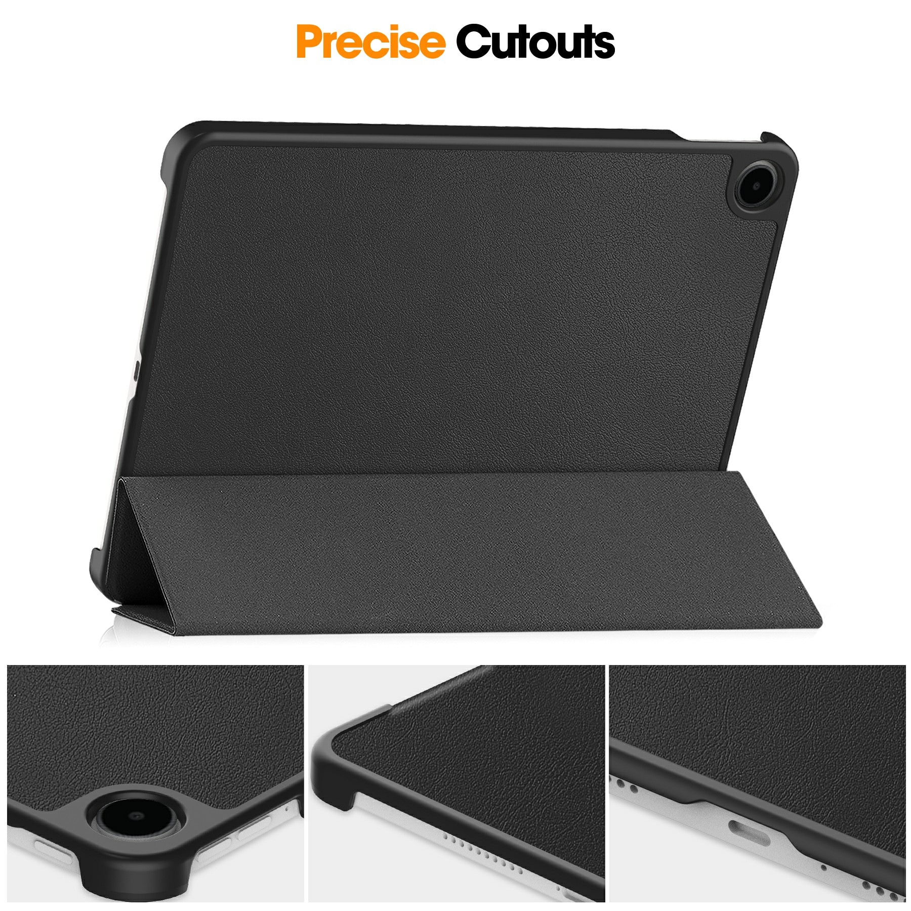 Fodralets tunna design gör att surfplattan inte blir tung och klumpig att använda. Locket viks runt på baksidan när du håller i den.